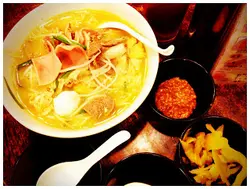 大窝过桥米线:配料种类多,有牛丸、鸡肉、猪肉、火腿、猪腩肉、猪润、墨丸等等,但每款的数量都不多,有些只有一块、一颗,不能说是「丰富」嘛!而米线算爽滑,份量较预期少,感觉不足两碗。我们都是食量大的人,所以吃得不算饱。