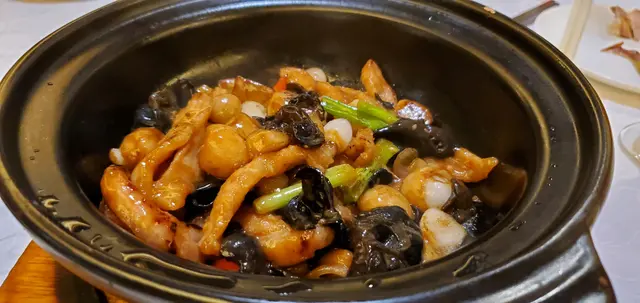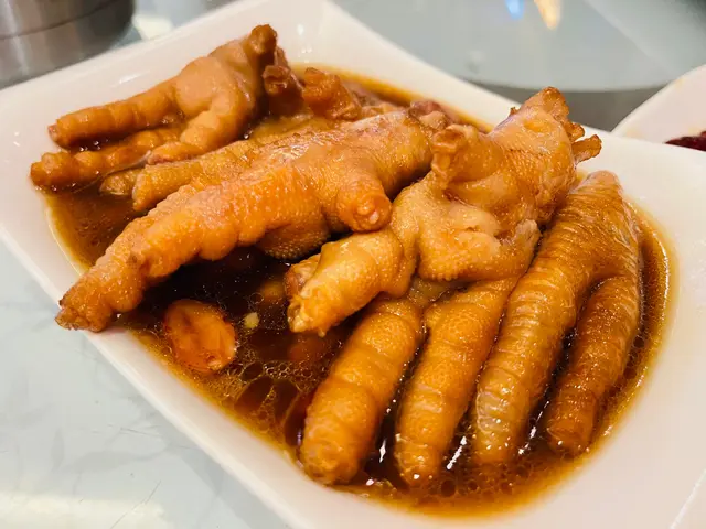 藥膳浸雞腳:雞腳炆得林,藥膳湯真係好藥材味,尤其是係當歸味,仲有啲杞子咁啦香煎芋頭糕:呢個都好食,不過嫌佢煎得唔夠脆,如果煎耐啲應該再好啲栗子惹菌餃:呢個嘅餡好食,不過個餃皮唔得,成pat咁樣夾到散晒XO醬炒蘿蔔糕:睇啲食水好似唔係好辣,實際又有啲辣嘅,幾香口幾好食蕃茄鮮竹卷:印象中第一次食到蕃茄嘅鮮竹卷,其實佢都係用返茄湯去浸個鮮竹卷,味道OK家鄉煎釀茄子:呢個都OK,係嫌佢油咗少少蒜香蝦春卷:香口好食但係都係比較油蜜汁叉燒腸:叉燒一粒粒都OK豉椒龍躉片煎米粉:呢個都好食,個米粉煎得又香又脆,龍躉片嘅新鮮度算接受到喇…查看更多