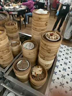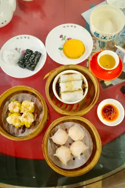 历史悠久既【襟江酒家】最近系家乐坊重开,就同fd去试下佢地既点心。点心时间由早上8:30到下午16:30都有得食。平日仲有早市长者优惠同下午茶优惠。因为沿用旧式酒家既形式、所以系要搭台同有点心车,非常怀旧复古。上汤鲜虾粉果:外皮先炸过,非常新鲜脆口,每一粒都有超多虾、涨卜卜,加上上汤非常清甜。鲜竹卷:腐皮吸饱蚝油汤汁,馅料有虾肉、猪肉同蔬菜,软嫩多汁。叉烧肠:比较逊色少少,皮比较厚。但叉烧馅好食。煎萝卜糕/芋头糕:萝卜糕煎到外脆内软,芋头糕粉糯带芋香,两款都唔油腻~雪山叉烧包:雪山皮松化同内里叉烧馅咸甜交织,热辣辣食超满足!烧卖:猪肉同鲜虾烧卖扎实弹牙,蟹籽点缀增加咸香,经典之选~鹌鹑蛋烧卖:烧卖加上原粒鹌鹑蛋,蛋香浓郁,口感更丰富~必推怀旧手工点心。灌汤饺:传统做法!饺皮薄透,包住热汤同鲜肉馅,一啖咬下爆晒汁~唔系浸汤版本先考功夫!叉烧酥:酥皮层次分明,叉烧馅蜜汁入味。芝麻卷+民丰糯米糍:黑芝麻香浓,口感软糯,一D都唔甜。糯米糍皮薄馅多,花生芝麻糖香口,老字号风味!必试佢地既叉烧类食品,因为系由米芝莲叉烧店师傅一手包办。另外仲有5款烧卖(传统烧卖、鹌鹑蛋烧卖、干蒸牛肉烧卖、猪膶烧卖同猪肚烧卖)已经好少地方有得食。…查看更多