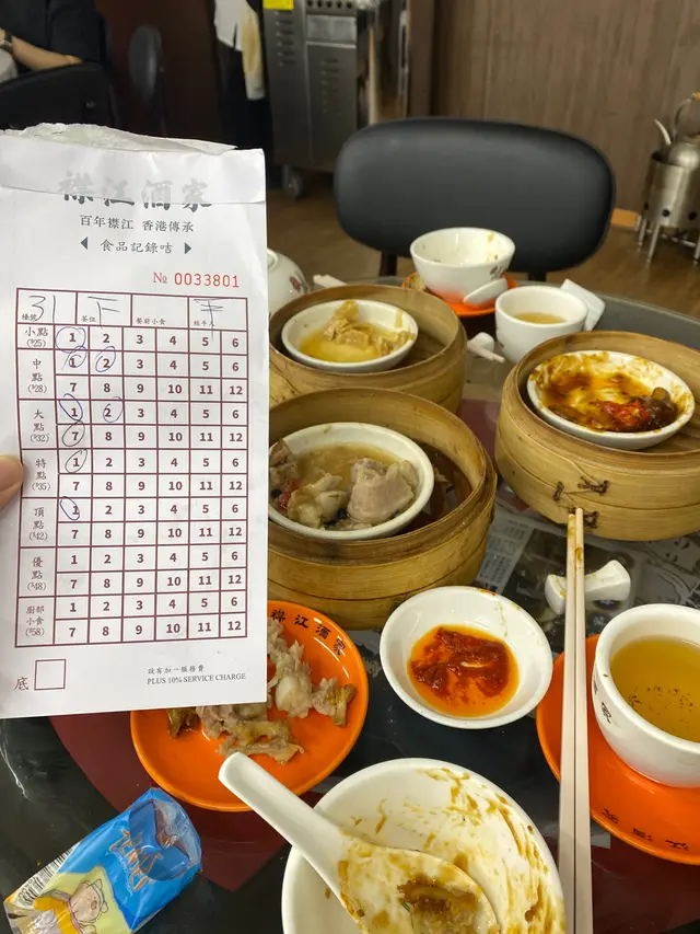 今次去咗呢間懷舊感十足嘅酒樓飲茶.令我諗起細個同屋企人去飲茶嘅時光.飲住杯茶, 睇定想食咩先.雖然餐牌上面有好多款食物, 但唔係全部都有得叫.要睇吓點心車有冇先得.我覺得有啲似開盲盒咁.第一轉我拎咗三籠點心同一碟腸粉.蟹籽燒賣皇 (HK$32-大點)依款係切肉燒賣嚟.有蝦係入面㗎.食落口感唔會好硬好實咁.錦繡牛肉球 (HK$28-中點)口感彈牙.蠔皇鮮竹卷 (HK$28-中點)好多汁.襯熱食好好食.蜜味叉燒腸 (HK$28-中點)腸粉好滑.除咗點心車嘅點心, 仲有期間限定小食.啲姐姐會捧住一盤食物問你有冇興趣.蝦多士 (HK$58 - 廚部小食)蝦好大隻.多士好酥化, 唔油膩.酥炸魷魚鬚(HK$58 - 廚部小食)魷魚鬚好大條.唔會好厚粉.見到煎糕嘅餐車經過.即刻去睇吓有咩食.可惜得返兩款食物.虎皮尖椒(HK$32-大點)辣椒有少少辣, 都幾好食.香煎芋頭糕(HK$32-大點)實實淨, 勁多芋頭.第二轉拎咗兩款點心.懷舊灌湯餃(HK$48-優點)灌湯餃一定要趁熱食.四寶滑雞札 (HK$42-頂點)雞扎好多料.我錯過咗架糖水車啊!不過俾我遇到依個布甸.蓮蓉西米焗布甸 (HK$35-特點)唔係好甜.蓮蓉比例啱啱好, 食完唔會好滯.西米有少少彈牙.熱辣辣食好正.依個一定要試!整體嚟講, 呢間酒樓點心質素唔錯, 有得同點心車姐姐互動係一個有趣嘅體驗嚟.星期六日食客都幾多, 如果驚多人, 建議平日嚟飲茶會好啲.…查看更多