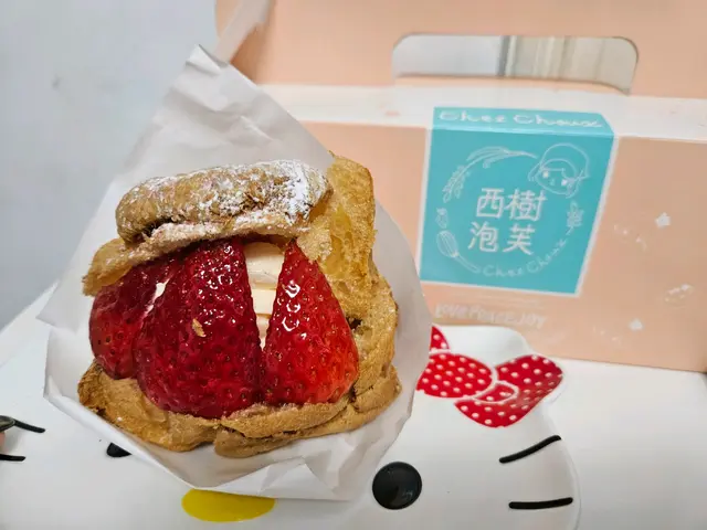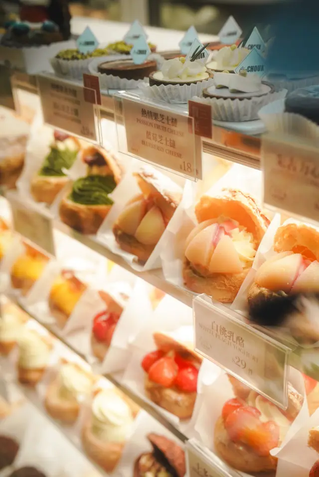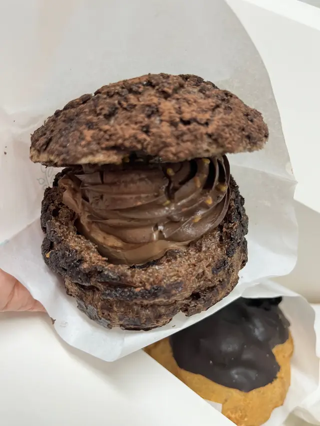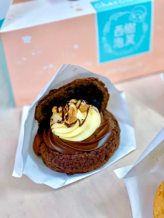 三款入面最驚喜,第一啖已經聞到淡淡玫瑰香,唔係嗰種假香精味,係好自然嘅花香。中間嘅忌廉酸酸甜甜,紅桑子同荔枝都好突出,層次豐富。夏天食真係好清新,冇負擔感🍑白桃乳酪泡芙