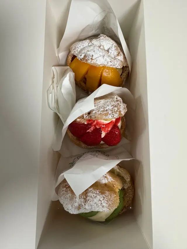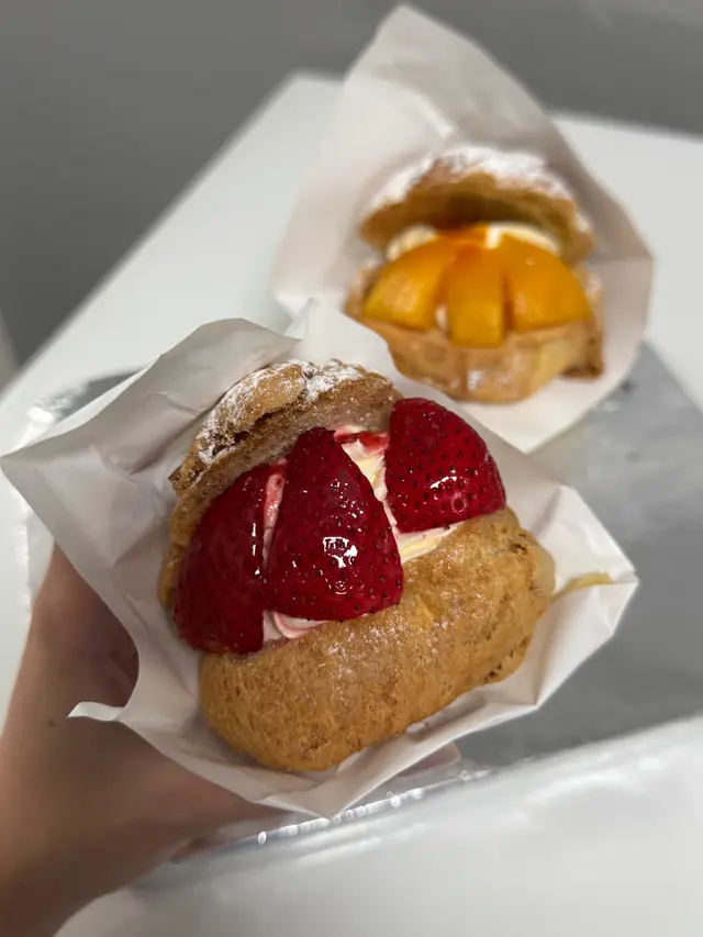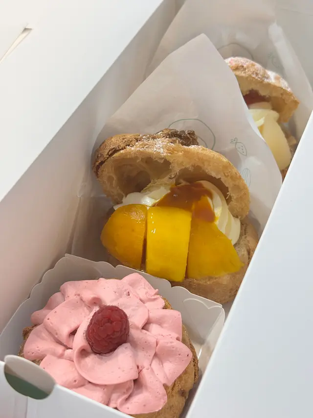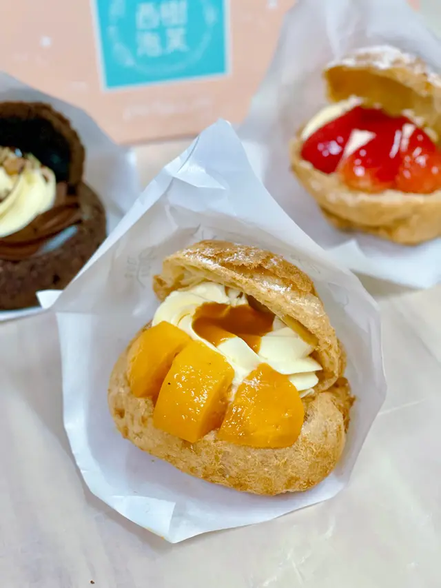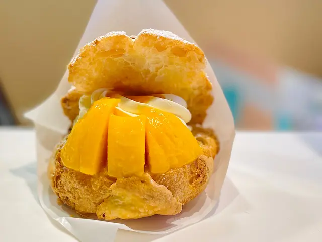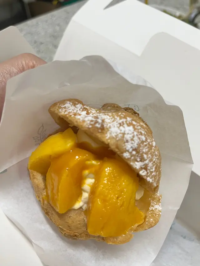 甜度相對高少少,但唔會膩,係果香味好重嗰種甜,似食緊白桃優格。忌廉口感滑,外皮係脆脆微酥型,幾有口感🥭芒果乳酪泡芙