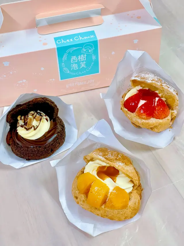 每次經過西樹泡芙都會俾佢嘅香味吸引,今日放工之後忍唔住買咗三款口味🙈✨紅桑子荔枝玫瑰泡芙(期間限定)
