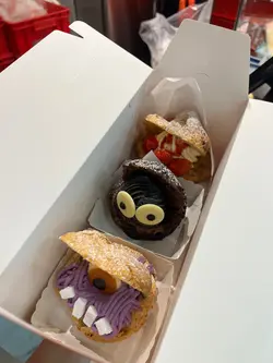 每次放工经过都要买返去做宵夜嘅泡芙🍦士多啤梨格拉斯泡芙,成个雪糕球嘅造型好得意,面层淋满士多啤梨酱,泡芙内馅超多,忌廉同吉士口感轻盈,食落好有层次感同满足感🍓 士多啤梨乳酪泡芙,劲多士多啤梨,乳酪味酸酸甜甜,食完吾腻🥛北海道牛乳布丁泡芙,超重奶香味,牛乳布甸好滑