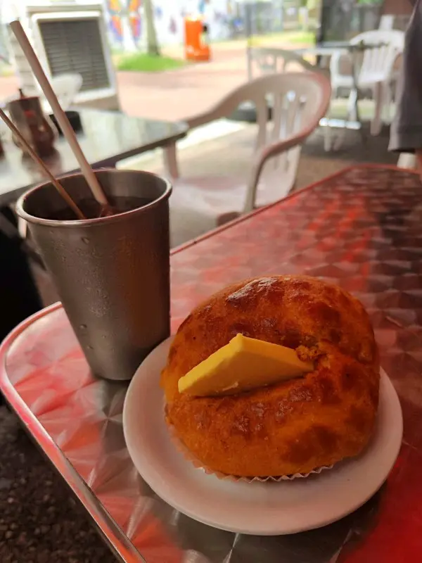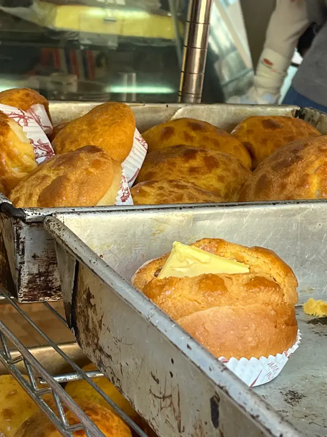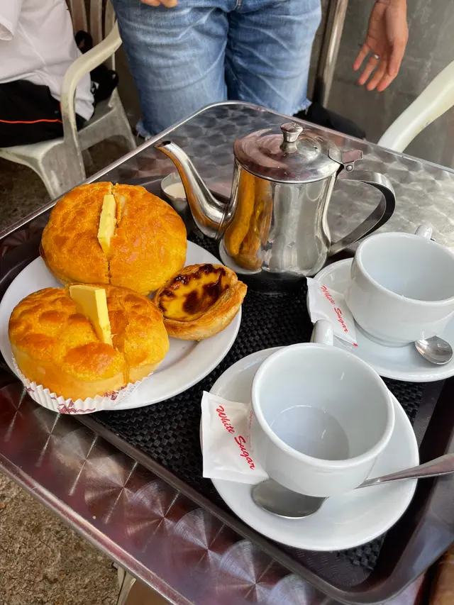 遊船河之前搵少少嘢食,知道呢度好出名,但係時間尚早仲未排隊,即刻坐低咗最出名嘅菠蘿油蛋撻加奶茶淨係奶茶嘅配置,我已經非常開心,咁樣擺埋一齊嘅感覺好豐盛,非常地道嘅感覺,餐枱嘅位置係半戶外,有一個帳篷,簡單幾張摺檯,當然唔係高級餐廳配置,但係就非常之有風味。菠蘿油同蛋撻都好新鮮,菠蘿油嘅牛油好大塊好厚,個「菠蘿」都好脆。蛋撻配奶茶係絕配,奶茶自己可以調節,茶底唔算好濃,就咁飲個味有啲似English Breakfast Tea。有機會可以再嚟。…查看更多