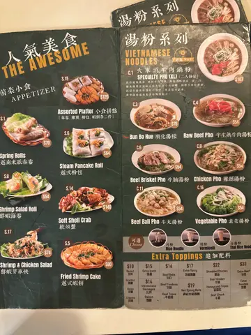 适逢假日5.1黄金周,难得放假唔使反工就同老婆入去行下,咁经过间越南餐厅,睇佢啲相好似几正,就冲入去试下,念住叫牛腩河应最稳阵唔会太差,点知中伏,啲牛腩切到一片片但完全靱到咬唔到,又柴又干以为食紧牛肉亁,而我老婆都系叫反香茅厒扒,呢个就味道正正常常,叫入到口,但间野难食都唔紧要,仲要安排我坐系入面一个走廊位,对住厨房落单位,但佢地就不断咁出出入入系咁撞到我,环境差,食品可能牛腩唔掂其它唔知,钟意食牛既唔建议