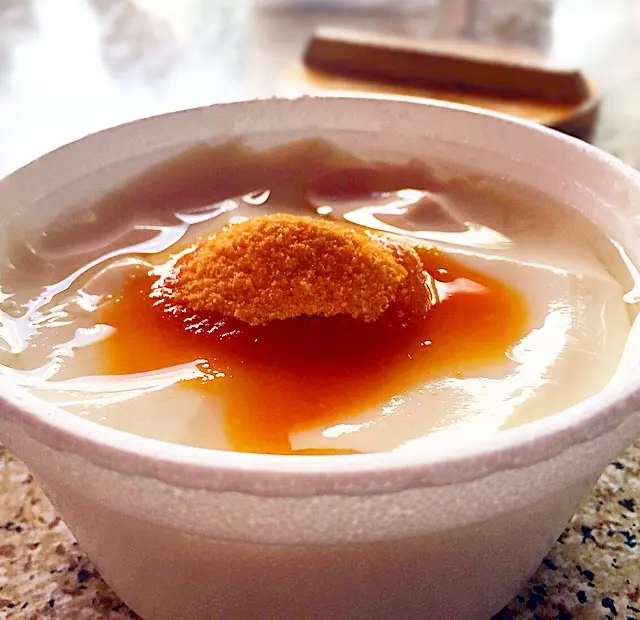 去林村許願附近當然要食下地道小食啦😋聽到門口極大廣播聲音📣搞到忍唔住入去試試😂.凍豆腐花 $13豆腐花豆味濃郁確係相當滑溜 水準不錯👍🏻黃糖粉可以隨意自行加配☺️盛載黃糖粉的木桶亦別有一番風味😇查看更多