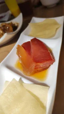 蔡澜先生都钟情嘅咏藜园,由大磡村起家。比起黄埔店,我个人更喜欢黄大仙店𠮶份街坊小店feel。早前黄大仙店由消防局对面搬咗去后一两条街嘅鸣凤街,新净咗同光猛咗。蜜汁火方,$105四块/$198八块系有少少贵,但又真心好味薄薄蒸包嘅软棉+火华火腿嘅咸香+蜜糖嘅清甜+薄脆嘅香脆,无敌。五香牛展($52)入味青瓜拉皮($45)麻酱浓郁,粉皮轻薄爽口弹牙脆皮素春卷($36),即叫即炸,热到辣咀,春卷皮好薄好脆,有一层层嘅口感,零油腻感👍🏻星期一至五,每日各有两款不同嘅特价菜式,星期五系麻酱鸡($70)同油炆笋。鸡厚肉嫰滑红油抄手($46)八粒,大大粒,皮薄多汁豆沙锅饼($50),又系热到辣嘴,红豆馅细滑唔会太甜,外皮薄身香脆冇冧油豆浆豆味浓郁星期一至五全日及星期六日午市都免加一菜式选择非常丰富,丰俭由人,午市有$50左右嘅客饭套餐…查看更多
