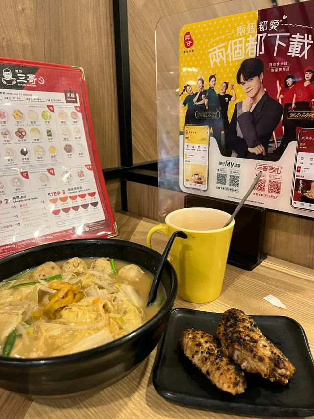 某日夜晚同朋友去咗食元朗嘅譚仔三哥米線,趁著晚市有優惠,試下睇下有幾抵食!但估唔到晚市優惠真係幾抵食,又有雞翼,又包野飲!雞肉乍醬米線 (胡辣湯底)胡辣湯底帶點花椒嘅麻香,我覺得唔辣,飲啲湯落好過癮。雞肉份量ok,肉質嫩滑,配上乍醬,幾好食。由於係晚市套餐,所以仲有兩隻土匪雞翼,外皮香脆,肉汁鎖得好,微辣嘅調味好開胃,完美配搭米線!雞肉乍醬米線 (蕃茄湯底)蕃茄湯底濃郁,蕃茄味好突出,酸甜平衡。雞肉同乍醬嘅組合依然好食,米線吸晒湯底精華,每一口都好滿足。同樣配咗兩隻土匪雞翼,同胡辣湯底嗰款一樣咁好味,保持一貫水準。素菜卷大纖米線 (姬松菇湯底)依個湯底適合鍾意清淡口味嘅朋友。姬松菇湯底好清甜,帶有菇類嘅鮮香,飲落好舒服,感覺上冇咩味精。素菜卷新鮮爽脆,大纖米線口感煙韌,食完覺得好健康,係一個唔錯嘅素食選擇。整體黎講,譚仔三哥嘅出品穩定,湯底選擇多,配料同小食質素都唔錯。晚市優惠係一個大賣點,性價比高,食得滿足又唔貴。查看更多
