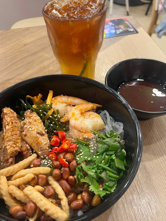 好耐冇食過譚仔三哥,今次嚟到就試咗佢最近新出嘅撈薯粉。上枱見到薯粉有蝦條覺得好奇怪😂仲跟單骨雞翼同埋蝦球。配料就有花生芫荽同埋海帶絲。呢碗撈汁聞落去勁酸,叫咗小辣。撈埋落去都只有酸味唔覺有辣味。另外用app叫會平啲同埋送飲品。查看更多