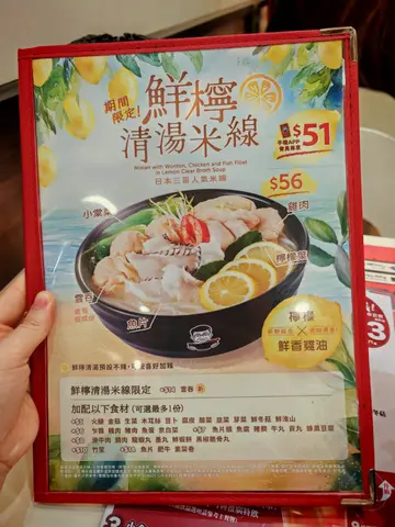 各位米线关注组嘅朋友仔!平时食开谭仔三哥,唔系麻辣就系煳辣,再唔系就三哥酸辣 😎 但今日经过三哥门口,俾我发现到一样颠覆宇宙嘅嘢——竟然出咗个「鲜柠清汤米线」?!仲要系期间限定!🤯所以决定试一试。究竟系天使嘅礼物👼,定系魔鬼嘅陷阱!一上枱,系同平时啲红当当嘅汤底好唔同,呢碗米线个汤底系奶黄色嘅,面头铺咗几块切得薄薄嘅新鲜柠檬片🍋,仲有红辣椒圈同翠绿嘅菜心做点缀,成件事好有夏日嘅清新feel!😍饮咗一啖汤系有惊喜既,清汤带住鲜柠檬嘅微酸令人觉得好Fresh好开胃。唔系好泰式但系成件事都几夹。「鲜柠清汤米线」嘅𩠌配搭系预设嘅,有云吞、鸡肉同鱼片,份量都可以!(女仔刚刚好,但男仔应该唔够食)至于啲𩠌:我特登+8蚊加个“鲜虾饼”,但好失望的系,虾饼好重粉味,完全食唔到虾味,又细又薄。鱼片有些腥,个人唔系太中意。云吞鸡肉正正常常。总括嚟讲,今次呢个「鲜柠清汤米线」对我黎讲,比较吸引的只系个汤底,未试过可以一试,试过就无须再试。🌟…查看更多