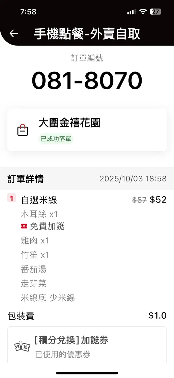 10月3號6:58分,我已經喺App叫定外賣。點知去到舖頭,7:20分都未有得攞。我諗住等多一陣應該差唔多,點知等到7:30都仲未有。我咪叫個姐姐幫手跟吓,冇理由煮個面煮成半個鐘都未得。結果嗰個冬菇頭姐姐完全冇打算幫手跟,淨係耍走我,話:「再等吓先啦,差唔多㗎啦。」我話我6:58分等到而家都未有,佢竟然話:「繁忙時間等半個鐘係好正常,有啲人等成八九個字。」仲問我有冇叫小食?我話我冇,淨係一個三餸米線。我再請佢幫我跟吓,佢竟然話:「冇得跟,好多外賣。」但我眼見堂食係咁出,外賣就完全冇出過。跟住另外有一個男人都等到鼓譟,佢同我差唔多時間叫,都係未有外賣比阿姐耍走😂出面企咗成堆人,有啲等堂食,有啲等外賣。最後,我見到有個男人自己走入去攞外賣,聽到佢話外賣喺入邊整好晒,擺到凍晒都冇人攞出嚟。我先入去望吓,真係見到啲外賣已經係入晒膠袋,pack好晒,成座山咁擺喺度冇人理。其實啲姐姐係咁出堂食,係咪可以放低啲外賣係出收銀呢?放啲外賣出嚟,啲人自己識得攞,好過你放晒喺入邊,啲人又唔知。呢間舖頭嘅員工培訓真係麻麻地。如果聽佢繼續等可能等到八點都未有得食。😂其實之前都試過喺度堂食,見到要等位,就攞咗飛,但啲人就咁行入去,啲姐姐又唔理,照帶佢哋入座。變咗攞飛嗰啲人係咁喺度等。希望管理層可以正視下呢啲問題,改善一下服務質素。…查看更多