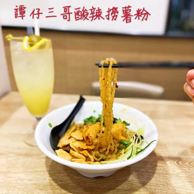 今日返工唔記得咗帶飯,出去食個快飯先😋 諗起譚仔三哥新出嘅酸辣撈薯粉所以就去咗試嗱。我由中學開始都好鍾意食三哥,又平又大碗又好味,大個咗反而少咗食,今日就去尋回三哥嘅滋味😝🍜 酸辣撈薯粉 (五小辣) ($39)呢個新出嘅酸辣撈薯粉係由五小辣起跳嘅,平時食開十小辣嘅人都可以挑戰吓,不過唔食辣嘅今次就無緣啦👻呢個撈薯粉用咗「三哥祕製酸辣汁」,食嘅時候完全感受到「香」、「麻」、「辛」、「辣」四種味道喺舌頭炸開,食得超過癮👅 而且仲特別開胃添💓撈薯粉入面有木耳、豬耳、粟米片、青瓜、芫茜、香葱,我仲加咗魚片頭添(+$5),好豐富😋🍹 鹹檸梳打 ($10)食完個酸辣撈米線,最啱就係加返個梳打gur一gur佢!譚仔三哥今次仲出埋鹹檸梳打,係泰式嘅味道呀😋呢杯梳打好大杯,仲可以解辣添😝#酸辣撈薯粉#原創獨創三哥酸辣汁##咸檸梳打#香港美食#蜜桃乳酸#hkfoodie#foodiehk查看更多