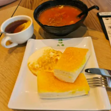 食厌左西式早餐,谂黎谂去唔知食咩好时,入黎三哥食个两𩠌米线早餐先。叫左猪润火腿少米线,糊辣十小辣,加多士,热奶茶多奶。盛惠38蚊。咁富丰盛既早餐都唔过40蚊,抵啦。猪润爽口,仲有我最中意既糊辣汤底,浓烈既糊辣味,真系好正。少米线份量岩岩好。食完个米线再食埋块多士,成件事好完满,满足到我想食多士,又唔想食西式早餐既心情😂奶茶要叫多奶,因为呢间d奶茶偏苦茶味比较浓,所以多奶对我黎讲味道岩岩好。呢间谭仔姐姐都比较亲切同有礼貌,唔知系咪因为邨屋商场舖做开街坊生意既关系,态度普通都比出面街舖既友善得多。