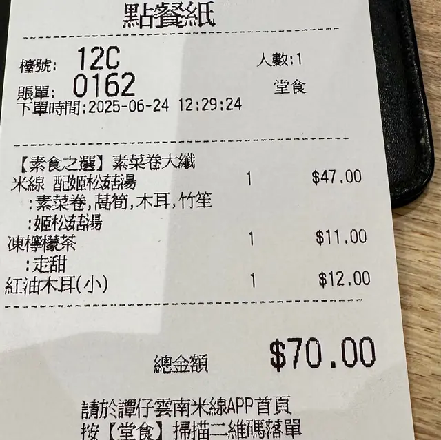 今日又要去佐敦上堂,不过时间就变咗系朝早上堂,所以落堂之后就去食lunch。本身想去食串烧,但系冇开门;想食澳牛又好多人排队… 所以就去咗澳牛对面嘅谭仔食米线。我好似已经好耐冇食过谭仔,原来而家可以用手机落order,唔使劳烦谭仔姐姐🤭 因为我唔系超级肚饿,所以同男朋友share一碗过桥米线已经好够饱😆 顺便试埋佢呢个新出?!嘅黑蒜清鸡汤,然后加多一碟麻辣猪耳过吓口瘾,就啱啱好👍🏻过桥米线配黑蒜清鸡汤 ($62)我叫过桥米线嘅原因好简单,就系因为佢够多配料,咩都有啲😆 而且大大碗,两个人share食都好够饱!至于佢𠮶黑蒜清鸡汤,我又唔觉得黑蒜味好出,同普通鸡汤差唔多🤔麻辣猪耳 ($30)呢个麻辣猪耳整得唔错,虽然睇落好似好辣,但系识落又唔觉得好辣,反而系麻多过辣。猪耳咬落爽口,而且份量算几多👍🏻冻柠茶 ($10)冻柠茶叫咗少甜少冰,未到就系正常既茶记水准,冇乜特别。