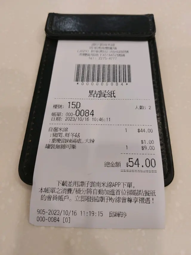 第一次在譚仔堂食約於晚上6時40分和媽媽入内留意到有不少人在門口等外賣沒人招呼,扣分只好隨便選一張空檯坐下,發現周圍的空檯(包括我們坐著的這張)全都沒人收拾,扣分檯上沒有餐牌(其他檯也一樣),只有兩旁貼有下載譚仔app的QR  code下載完發現要登記才能點餐🙄不過我不想用個人資料登記(因爲很久才吃一次),只能作罷一番張望後發現,門口有架放著餐牌爲什麽不方便一點,每張檯放一張餐牌??還需要食客自己去拿,扣分選好食物後,媽媽舉手等候姐姐打掃檯面和落單誰料,舉手一段時間才有姐姐出現打掃不過姐姐居然先打掃沒有食客的空檯???,扣分擾攘一番後,終於清理好桌面及完成落單btw,我選的是重慶酸辣湯底魚腐米綫(不可選擇辣度),媽媽選的是清湯底過橋米綫等候食物時,有其他食客在旁邊的空檯落座我才發現原來有點餐紙(可以掃描上面的QR code下單)???進店到這個時刻從來沒有姐姐給我們點餐紙,扣分而且看到有很多外賣已準備好,感覺外賣的出餐速度比堂食快?希望堂食出餐速度可以改善食物方面,媽媽對她的米綫大致滿意,不過覺得太鹹不過我不太滿意我的酸辣米綫並沒有酸的感覺,辣也不是很辣,只是令舌頭微微發熱而已查看更多