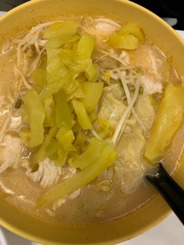 唔想食太飽,自選米線轉京白菜底,餸揀了墨丸,麻辣湯底 10小辣 $47,加了蒜泥白肉(小)$27及湖南土匪雞翼(3隻)$27!墨丸有5粒,京白菜份量多,菜好甜,適合唔想食澱粉質人士;蒜泥白肉小份,份量都okay, 小小辣,好惹味;湖南土匪雞翼唔陌生,保持到水準!店舖都好大嘅,但不太整潔乾淨,地上有水漬,咁啱坐嗰張枱也不太乾淨;佢哋係可以手機app下單,但有啲位係收唔到網絡,後尾轉左枱好啲,下到單,慢啲!…查看更多