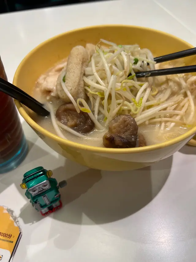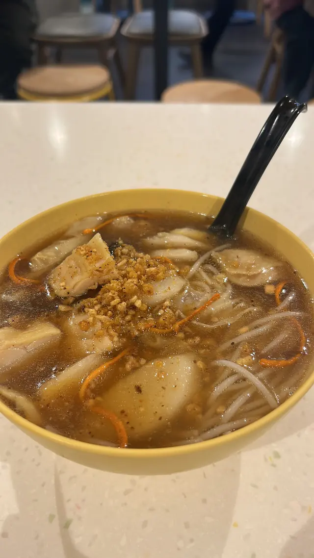 黑蒜雞米線,係譚仔期間限定所以就一試因為係黑蒜,湯的顏色是啡啡地味道沒有太大的黑蒜味感覺一般味道不太濃郁,反而一讚的是雞件很嫩滑希望這個期間限定做完就算唔好再出查看更多