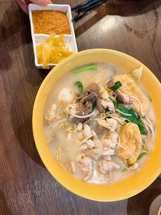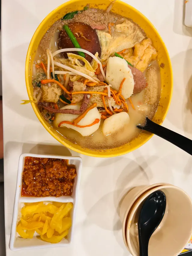 譚仔雲南米線的麻辣豬耳及魚蛋腩肉麻辣米線,味道十分出色。豬耳爽脆有嚼口,滲透麻辣汁的香辣且帶微微麻感,讓人一口接一口。魚蛋和腩肉份量充足,魚蛋鮮嫩彈牙,與米線完美融合,米線吸收了濃郁麻辣湯汁,香氣四溢,既能滿足愛辣人士,也不會過度刺激,是一碗極具滿足感的經典麻辣米線。凍奶茶香滑濃郁,茶味香濃,多奶味道豐富,甜度適中,冰涼解辣,非常相配!…查看更多