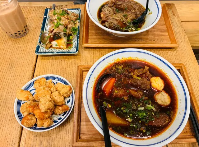 出開去黃埔幫個朋友手整嘢 搞掂諗住食埋個飯先走見到呢間台灣嘢靚靚哋又坐得幾舒服就入咗去食紅燒牛肉麵牛筋牛腩都炆到好腍麵底夠咬口,配埋濃厚嘅湯底 正湯底本身唔辣 所以問店員攞咗辣油自己加料加咗辣之後更有層次 食到清碗朋友鍾意食撈麵嗌咗個豐盛牛肉肉乾拌麵 口水汁佢話個口水汁好出色 又夠辣又夠麻 勁掛汁牛肉牛筋份量都好夠 性價比十足個麵嘅份量都大 食完好夠飽🥒涼拌青瓜 清爽好味 咁啱因為豆腐賣晒所以可以多青瓜 仲好😆🌭台灣小香腸 甜甜地 唔油 少食多滋味 🐟 魚酥皮蛋豆腐食完一個濃味嘅麵食返個凍豆腐冷盤都幾清新大大件份量十足,滿意整體嚟講嚟講都幾好 唔太貴 嘢食質素高舖頭闊落坐得舒服如果經開黃埔想食台灣嘢都一定會再返嚟幫襯…查看更多