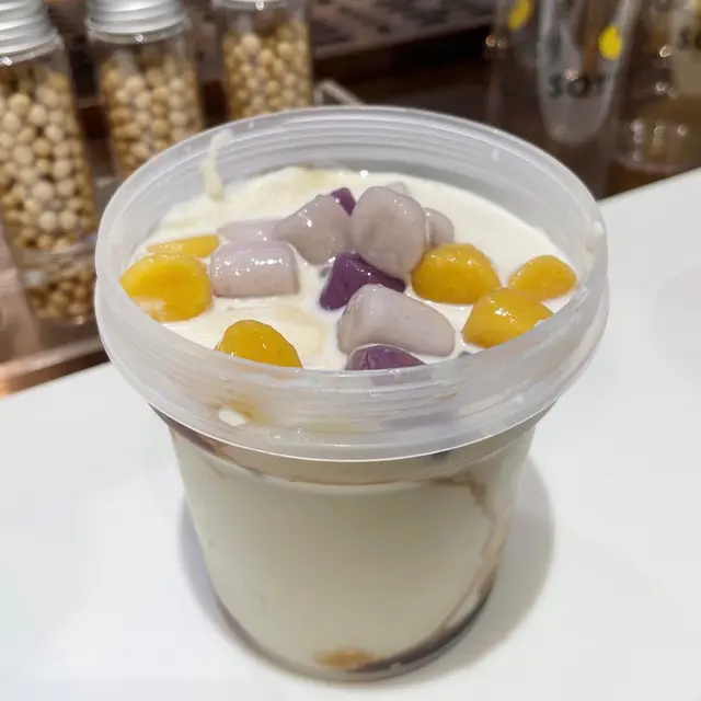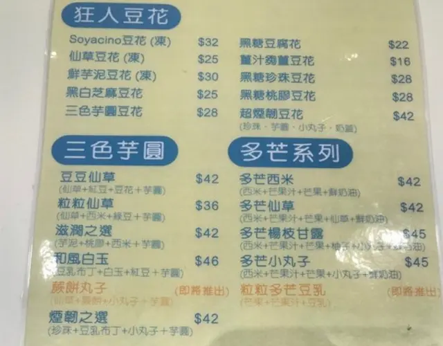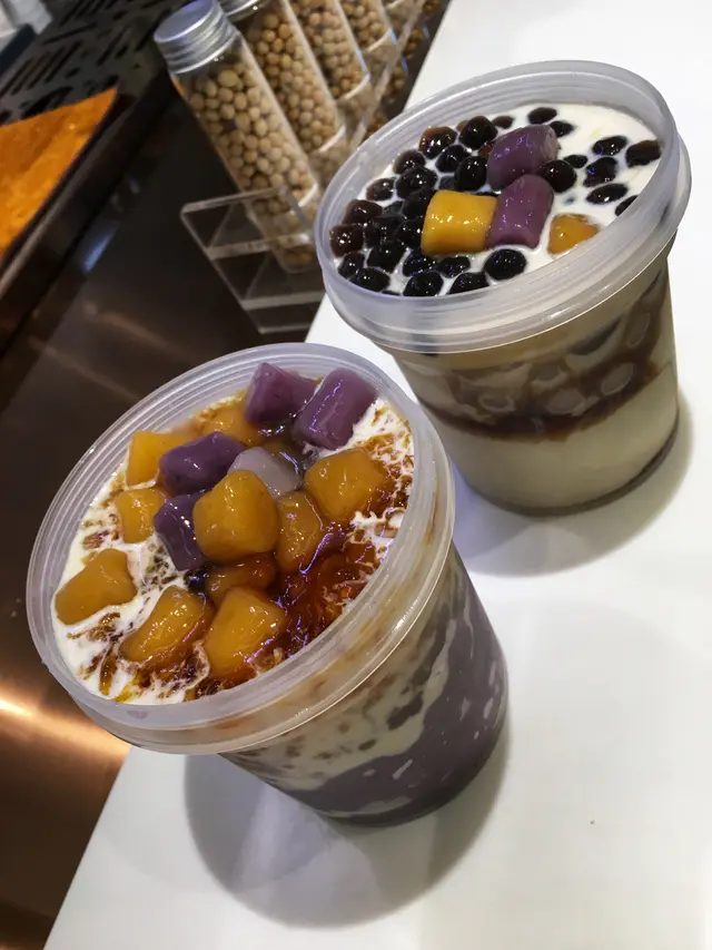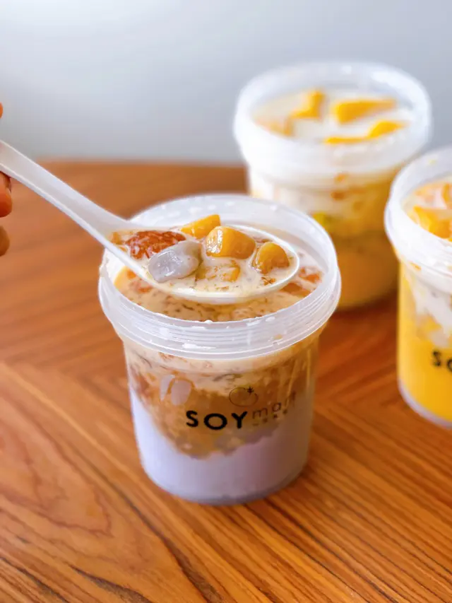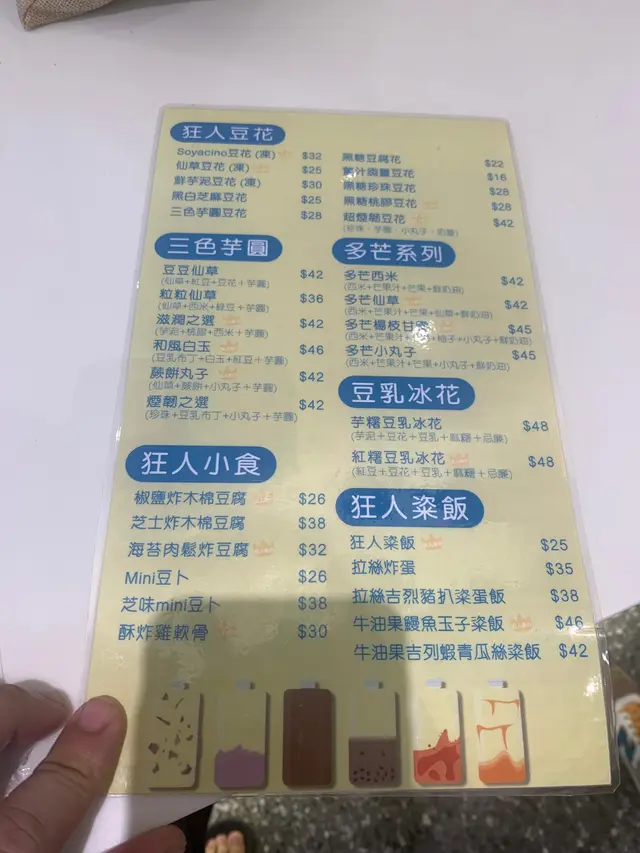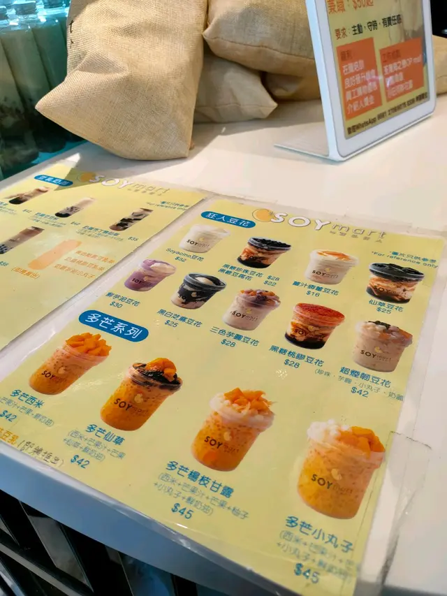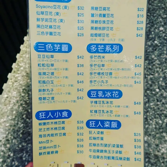 呢間「豆乳狂人」個Menu真係好吸引,8。6特濃豆乳、豆乳茶、豆乳奶蓋、桃膠、芋泥,同多芒系列等。仲有多款小食,炸物!比個多芒系列吸引住,賣相好正!🌈多芒小丸子 $45 🌈多芒楊枝甘露 $45都係以芒果+芒果汁+西米+小丸子+鮮奶油為主,(楊枝甘露就多左柚子,多一份清爽既柚子香氣,),芒果份量好多,切到大大粒,清甜濃郁,香氣十足,完全冇酸味,小丸子煙韌有咬口,份量都幾足料,濃濃既奶香同芒果香夾埋一齊,好正!🌈抹茶紅豆小丸子 $48用8。6豆乳抹茶做base,配合軟綿紅豆,飲到濃濃既豆香味同抹茶既甘味,甜得黎有層次,唔係死甜,小許creamy,入口順滑。🔥酥炸雞軟骨 $30新鮮出爐,熱辣辣,好酥脆但係唔會乾,小許椒鹽調味已經好惹味!🔥椒鹽炸木棉豆腐 $26外面香脆,內裡豆腐口感較普通豆腐要紮實,綿密,有口感!…查看更多