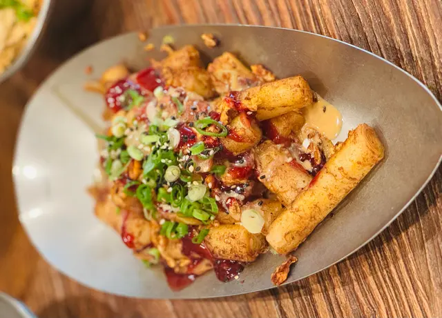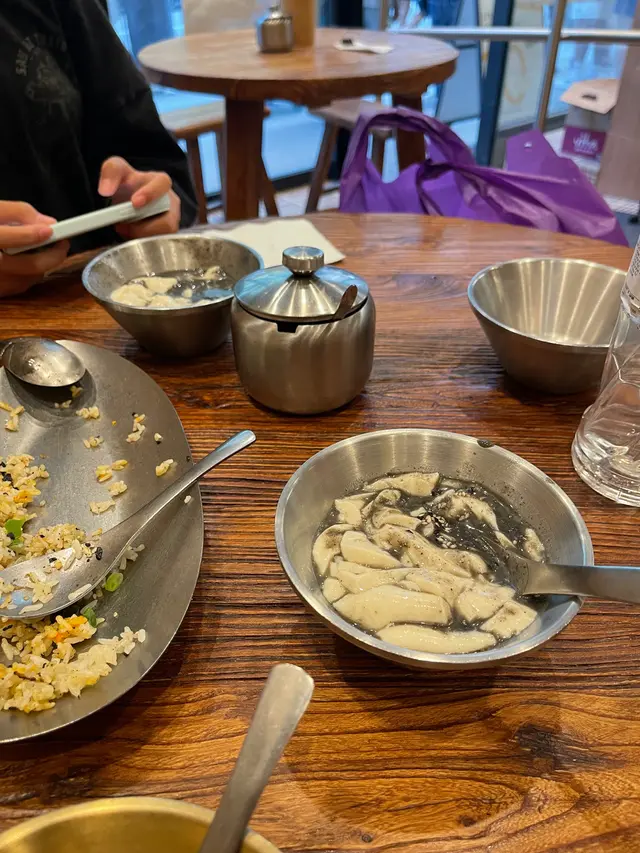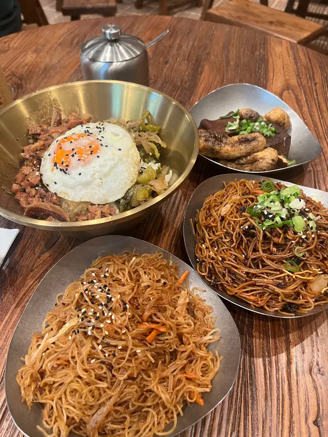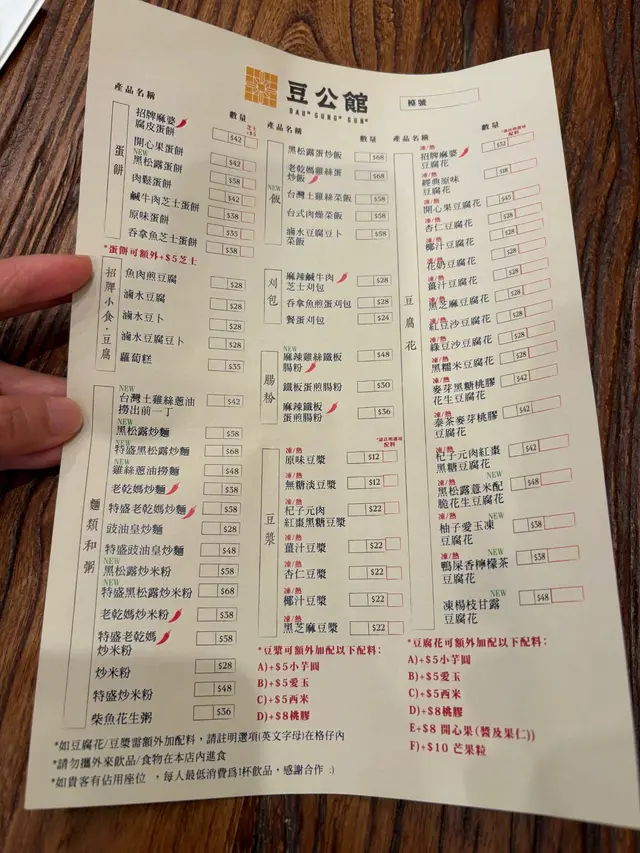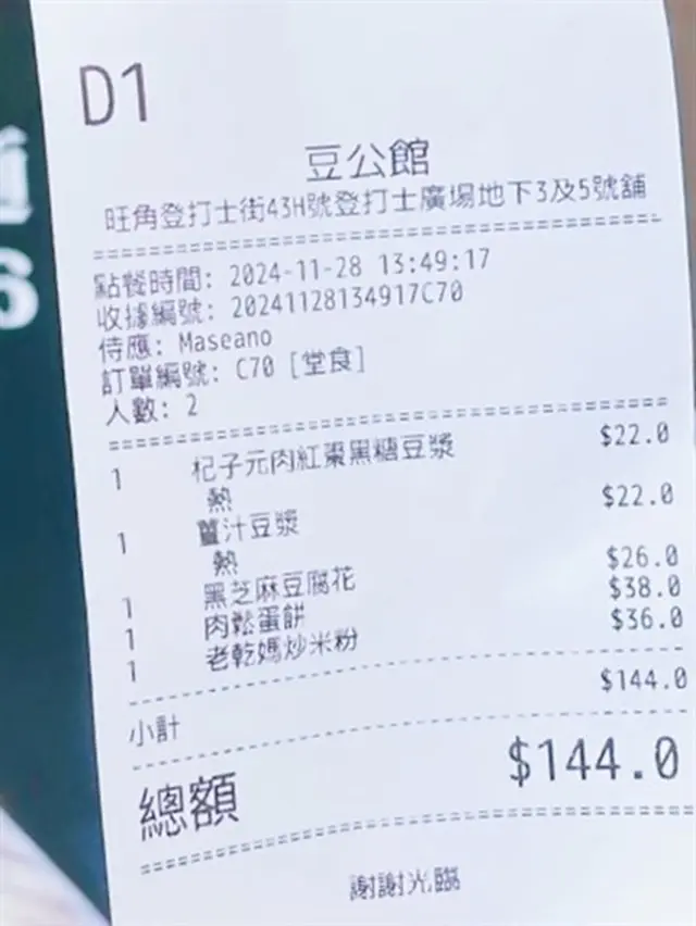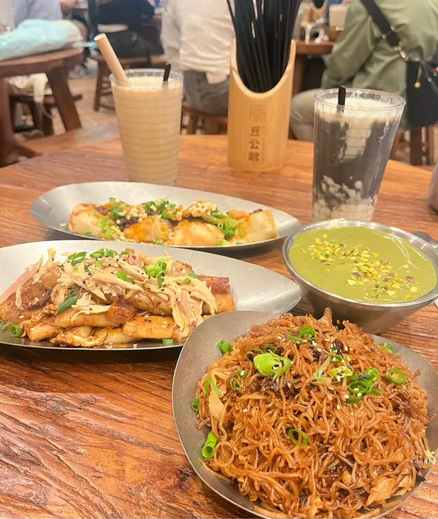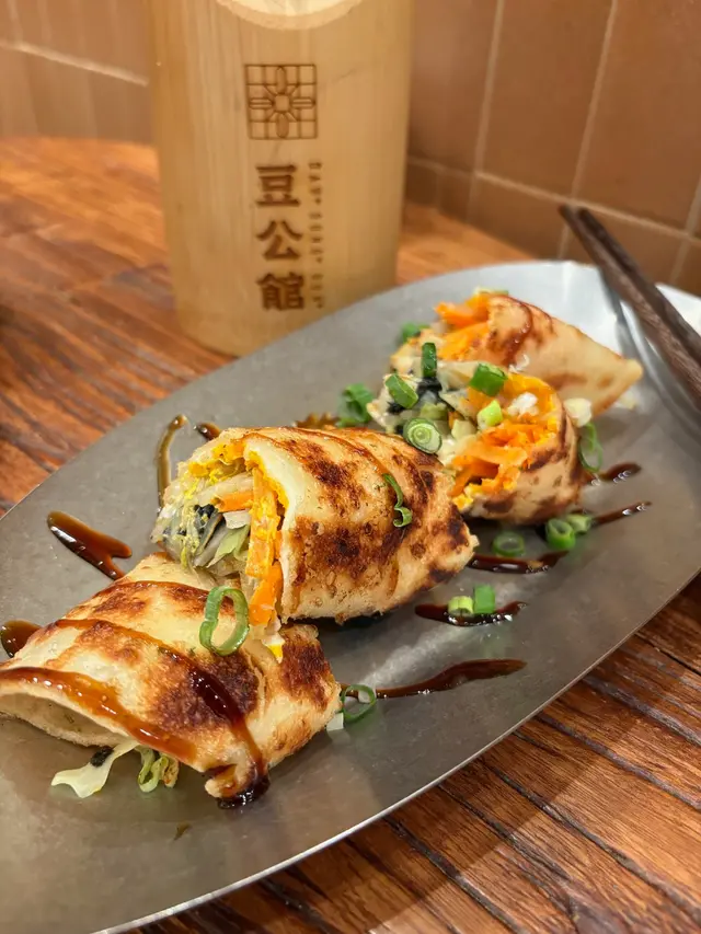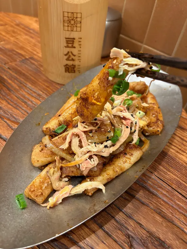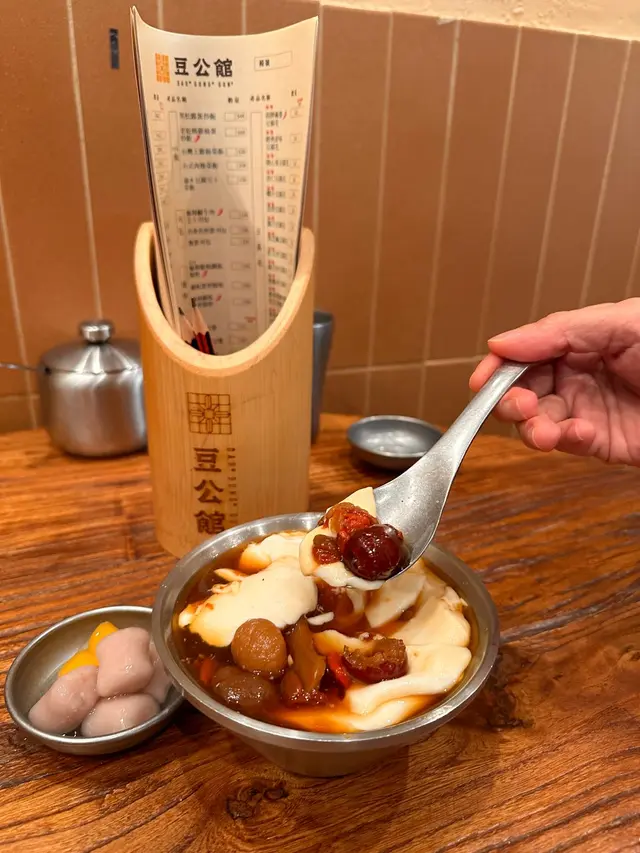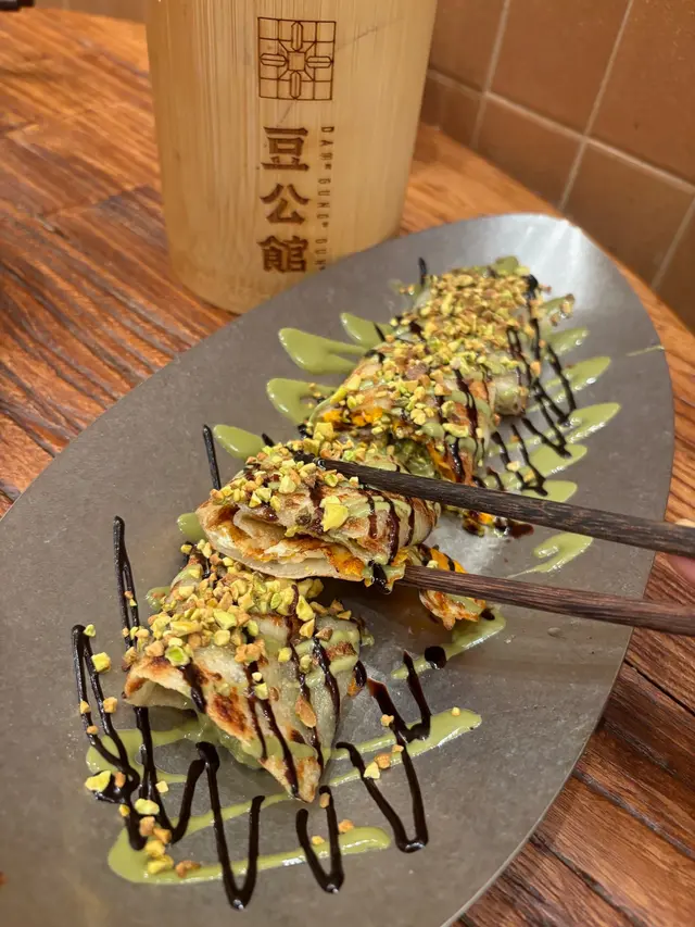 豆公館位於美食小店林立嘅旺角廣華街,豆公館顧名思義就係豆品項目為主嘅一間地道小店。餐廳採取以QR code自助下單夠哂方便👍🏻我哋兩個人就叫咗幾款招牌品一齊share,最重要嘅就梗係試吓呢度嘅馳名招牌開心果豆腐花❤️差唔多係每一台必點嘅甜品之一😍😍招牌麻婆腐皮蛋餅係必試!蛋餅煎到金黃微焦,蛋餅入邊係滿滿嘅餡料,免頭放咗招牌麻婆醬同埋少量榨菜,每一啖都係多重口感,整體辣度中等👍🏻老乾媽炒米粉夠乾身亦唔算油,雖然米粉較碎身但完全唔影響整體味道,老乾媽嘅豆豉香同辣味相當惹味,唔好睇佢好似細細碟,但係份量相當足料,建議兩個女仔可以點小份,咁就可以再試吓其他嘢食🤭🤭一口魚肉煎豆腐就好似舊式煎釀三寶咁😆😆但係佢嘅魚肉同豆腐係分開嘅,魚肉餅外皮煎香,豆腐軟滑,魚肉餡鮮甜,蘸埋秘製醬汁都幾夠味,一客4件作為小食💯💯雞絲鐵板蛋腸粉熱辣辣上台,腸粉每條都炒至金黃色,邊邊仲會帶點焦香嘅脆脆口感,整體係香到停唔到口,手撕雞絲配上腸粉相當唔錯,重點係竟然有唔辣嘅選擇,如果食辣嘅朋友就更加推介選擇麻辣雞絲口味🤗🤗開心果豆腐花淨係賣相已經相當吸引😍成碗都係開心果嘅綠色🥰🥰豆腐花嘅豆味濃得來滑到不得了,加上濃郁嘅開心果醬,甜中帶點點堅果香,難怪每一台都必點一份❤️除咗甜品選項之外,仲有好多多款豆類製品嘅飲品選項,例如有特色口味嘅豆漿、黑芝麻豆漿、桂圓桃膠豆漿等等,而我哋就揀左孖寶系列嘅黑芝麻丸子孖寶同黑糖珍珠孖寶😚😚孖寶系列其實就係豆腐花,加上豆漿,咁你就可以一次過試晒兩款豆製品😚😚芝麻丸子口味嘅芝麻醬香到爆燈,加試或信嘅豆腐花同埋煙煙韌嘅白玉;而黑糖珍珠QQ又有嚼勁,黑糖味濃但唔會太甜👍🏻👍🏻…查看更多