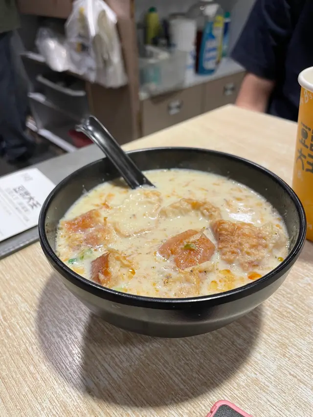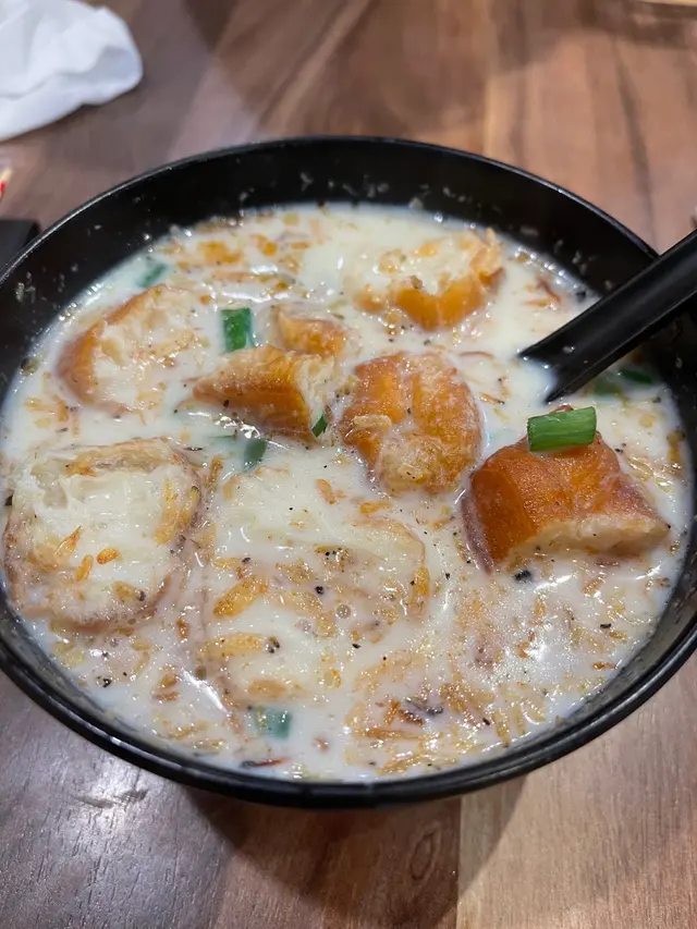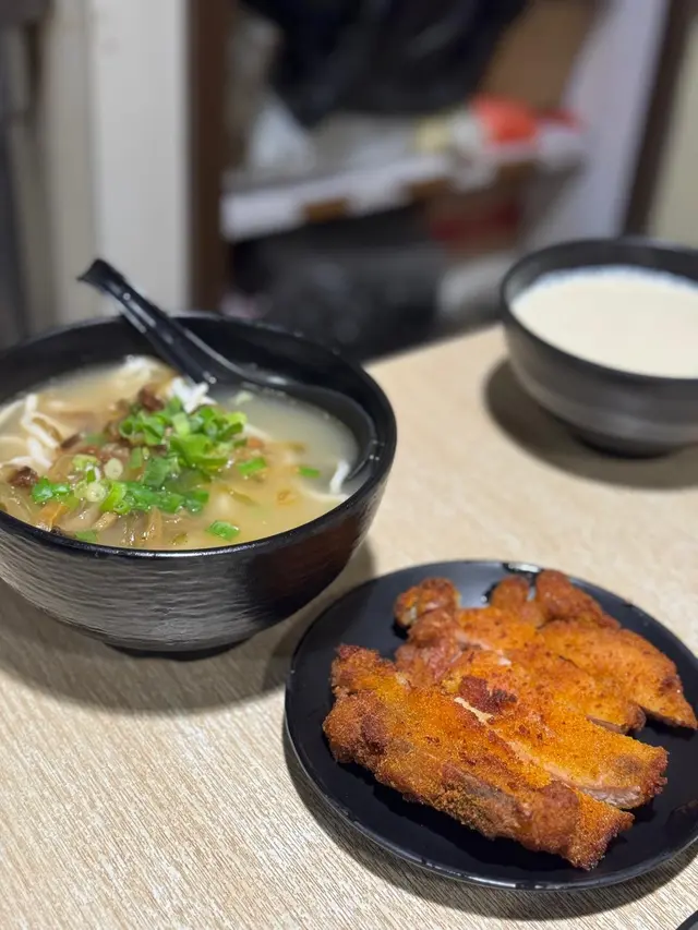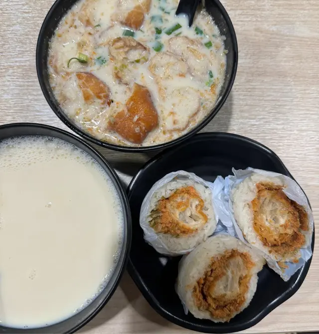 今晚收工去咗新蒲崗,試咗間好出名吃粢飯嘅小店。果然名不虛傳,個咸粢飯真係無得彈!炸菜爽脆,油條夠脆身又唔會韌,肉鬆鹹香夾得啱啱好,飯粒軟糯唔會過硬,簡單但功夫到位。不過個上海排骨麵就跌咗少少watt~塊排骨炸得過火,油淋淋好似浸過油缸咁,咬落去有啲韌,同個清湯麵底有啲格格不入。好在個麵湯底清甜,加咗大量葱花吊味,叫做救返少少分。飲品方面,杯熱豆漿有驚喜!豆味濃得嚟唔會過甜,飲完成個人都暖笠笠。煎菜肉包就合格啦,皮薄餡足,菜肉比例適中,當個輕食頂下肚都唔錯。總括來講,為咗個粢飯同豆漿絕對會返兜,但個排骨麵就...下次都係試其他嘢算啦!…查看更多