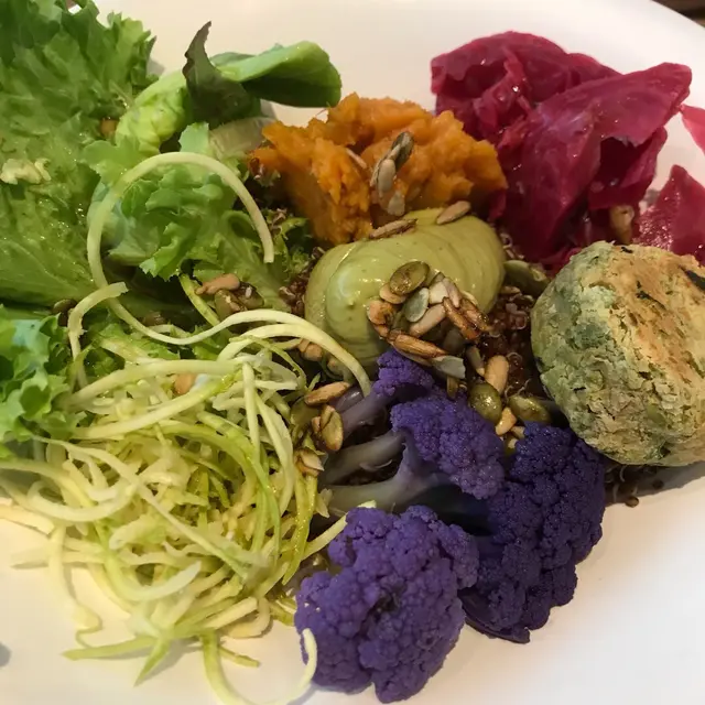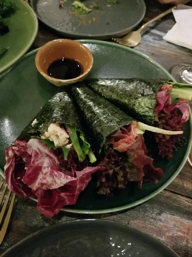 終於搵到腳食素菜,好多香港人無肉不歡,要搵朋友去試都唔係易。環觀周圍亦都係外國人較為多。佢既地方寬敞,亦都幾靚幾舒服。食物好有驚喜,全部都好好味!頭盤係popcorn "chicken"。當然就無雞啦,不過朋友話食落似雞。我就覺得一食就知係菇,不過確實整得好香!蘑菇意粉都幾貴,不過係signature,一定要試。個汁係好!好!味!真係值得一試。佢用腰果打既醬好香好creamy!同其他相比,呢個飯係無咁大驚喜。不過我好食飯,佢係紫米,加上我估係豆做既札肉同埋用茹做既煙肉。個假煙肉稍為乾身,不過個smoke味幾香。甜品都好特別。整體上偏唔甜,兩款蛋糕都好有果香,所以食落好舒服。記得可可mousse要撈一撈下面啲jam先食,如果唔係會太苦!值得注意佢無service charge,不過會有3% carbon tax。…查看更多