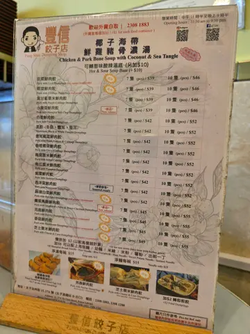 丰信饺子相信大家都听过,我每隔一排就会帮衬,每次饭点时间都一定大排长笼。但都无阻我想食佢嘅心!🥟香菇鲜肉饺并芫茜鲜肉汤饺7只 $47★★★★☆其中最出名嘅椰子海带鲜猪骨汤,次次叫汤饺都会饮哂呢碗汤!一入座已经有好几款饺子售罄,最想食嘅西洋菜、椰菜都冇哂!香菇鲜肉饺皮薄肉馅好爽弹,菇味好香,配汤一流;芫茜饺真系睇人口味,我自己系芫茜控觉得超级之香,芫茜味超级突出,食落系大满足!🥟紫菜鲜肉饺并麻辣白菜煎饺 10只 $79★★★★☆除左煎饺我仲加左$17蚊加埋个金沙饺!真系超级邪恶,每只饺子香脆仲铺满哂咸蛋黄,咸香又沙沙嘅口感,好正!叫到呢个时间已冇咩饺子选择,紫菜超爆馅,煎都几夹,我最钟意加埋佢个辣菜脯一齐食,超惹味。麻辣第一次试就出奇地好钟意,有麻辣香(偏向大陆风味),但唔会太辣,一般人绝对接受到!🌟凉拌皮蛋 $22★★★★☆呢个系我每次黎都必叫嘅小食,皮蛋汁系甜口嘅醋汁,食落系超级开胃!佢仲配埋个腌姜,呢个又系我Favourite,单食配饺子、配皮蛋都得,解腻一流!🌟秘汁金钱展 $40★★★★☆呢个金钱展好厚实有一定口感,食落去札实但唔韧,佢已经卤得好入味。一碟都有6-7片,绝对有惊喜!🌟罗汉果金草茶 $12★★★★☆呢个价钱有一大枝真系好抵饮,加上食煎饺考虑到热气呢个问题,呢款就有清热效果,完美。总结:每款饺子都好食,汤同煎各有特色,最好两样叫齐!建议大家早D食,因为8点左右已经得番1-2款饺子。…查看更多