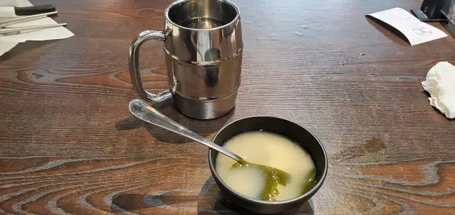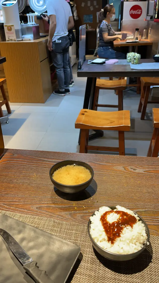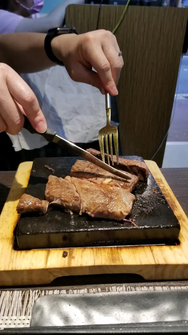 見到佢午餐幾抵食,$38蚊起,最平嘅牛扒$55,出邊有自助吧任食,有飯、沙律、湯,自助吧幾衞生,沙津分好一罐罐,自已加汁,但飲品要加$7罐,叫了一份魚柳及肉眼,炸魚柳有兩塊,大小適中,幾脆下。肉眼扒大約有150-200g,肉質唔錯,上碟時全生,自己係石版上面煎,肉質唔會話好鞋,幾有牛味,佢個黑椒汁味道幾濃,幾好食,醬汁出面自已任攞。埋單唔使加一,如果呢個價錢係旺角有呢個質素同食得飽,真係幾抵食,Cp值高。…查看更多