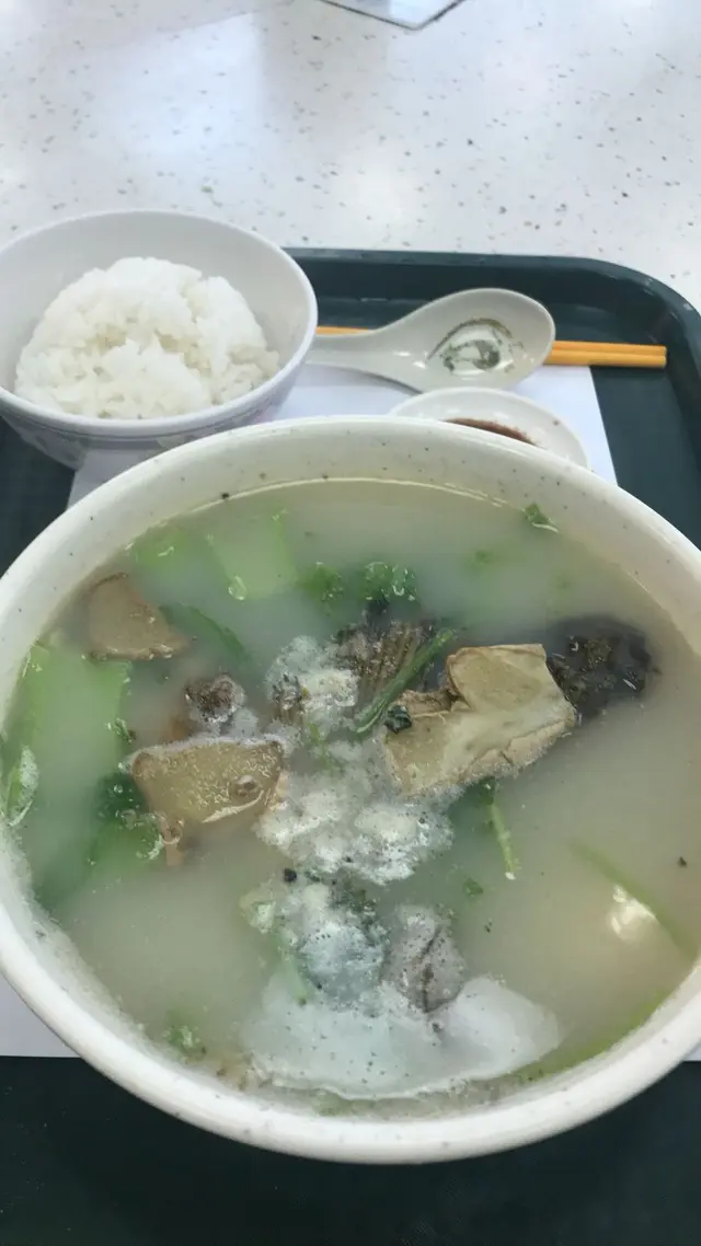 一直都鍾意揾D地道美食,今次經開旺角熟食中心,見到呢間湯飯店好似評語唔錯,咁啱又想飲湯,所以一試。叫左胡椒豬肚魚骨腩湯飯同牛腩撈烏冬,買完等候期間,都見到好多人買外賣,應該係附近返工既人,所以越等越期待,點知......就咁睇都以為湯底濃厚,滿心歡喜咁試下個湯,真心覺得有無搞錯,個湯奶白色點解可以一D味都無,正常都有少少胡椒味啩,但係無囉,好似加左水咁