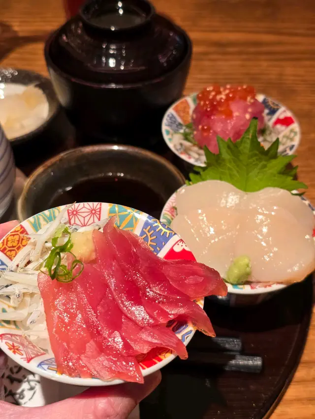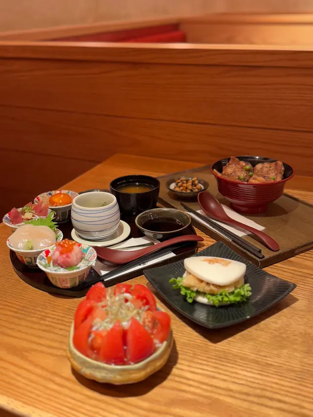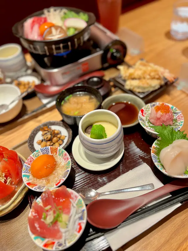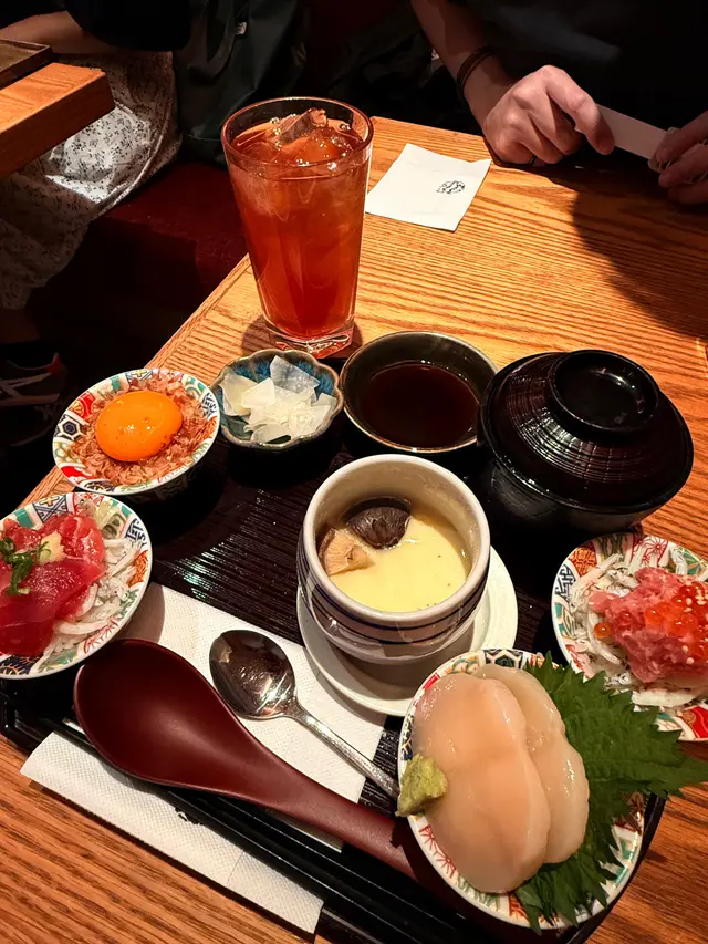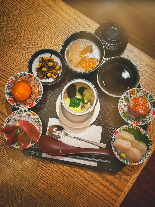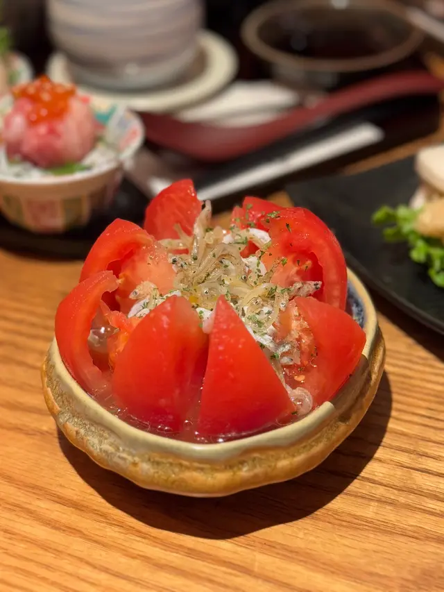 今日同男朋友嚟到德福行街呢度真係好多嘢食 選擇困難咁啱經過見到做緊推廣有限定嘅套餐 賣相都幾吸引入咗去食 好鍾意佢推嘅春之四色- - - - - - - - - - - - - - - - - - - - - - - -1. 春之四色刺身定食好鍾意呢啲定食嘅擺盤 細細碗好滴骰啱晒細食嘅人食到4款唔同迷你海鮮丼飯仲有前菜(醃蘿蔔)、茶碗蒸同味噌湯滿滿春季鮮活風味 完美結合鮮美同清爽一餐試到咁多樣嘢 帶嚟唔同味覺享受第一碗係醬油漬蛋配木魚絲丼 呢個配搭好正濃郁醬油漬蛋黃同帶有魚鮮香味嘅木魚絲軟嫩嘅蛋對比脆脆口感嘅木魚絲都幾得意第二碗係拖羅蓉海鮮丼 個拖羅蓉係好細膩順滑有陣豐富油脂香味 上面仲有啲通透嘅三文魚籽入口更加豐富 三文魚籽會喺口入面爆出嚟第三碗係帆立貝丼 新鮮嘅帆立貝都幾大粒肉質食落係有飽滿感覺 同埋都好鮮甜滑嫩第四碗係醬油漬吞拿魚配魩仔魚丼一半鋪滿醬油漬熟成、柔軟細膩嘅吞拿魚醬油漬將鮮味昇華 散發深邃醬油風味另半鋪咗入口即化嘅魩仔魚 多咗海鮮鮮味2. 德島魩仔魚漬番茄呢個跟餐加配就有 本身都好鍾意食番茄諗住加嚟當係前菜咁食 點知出奇地好配合真係幾啱用嚟開胃 因為清爽酸甜嘅漬蕃茄搭配脆炸、鮮香咸味嘅魩仔魚 都仲係好清新同埋每嚿番茄都係爽脆多汁 好多水份~3. 澳洲和牛壽喜燒御膳壽喜燒愛好者唔會錯過落單試試鍋入面除咗必有嘅牛肉、生雞蛋仲有金針菇、白菜、豆腐、冬菇跟餐配埋副菜、刺身、茶碗蒸仲有海老味噌湯 湯底唔會好咸牛肉唔會好嚡 送到白飯刺身包括大蝦、三文魚、象拔蚌尤其隻蝦特別肥美好欣賞個味噌湯本身已經好足料好多豆腐、紅白蘿蔔、薯仔、蒟蒻仲加咗櫻花蝦點綴 睇落個餐即刻高級感升 飲落都好濃郁鮮美…查看更多