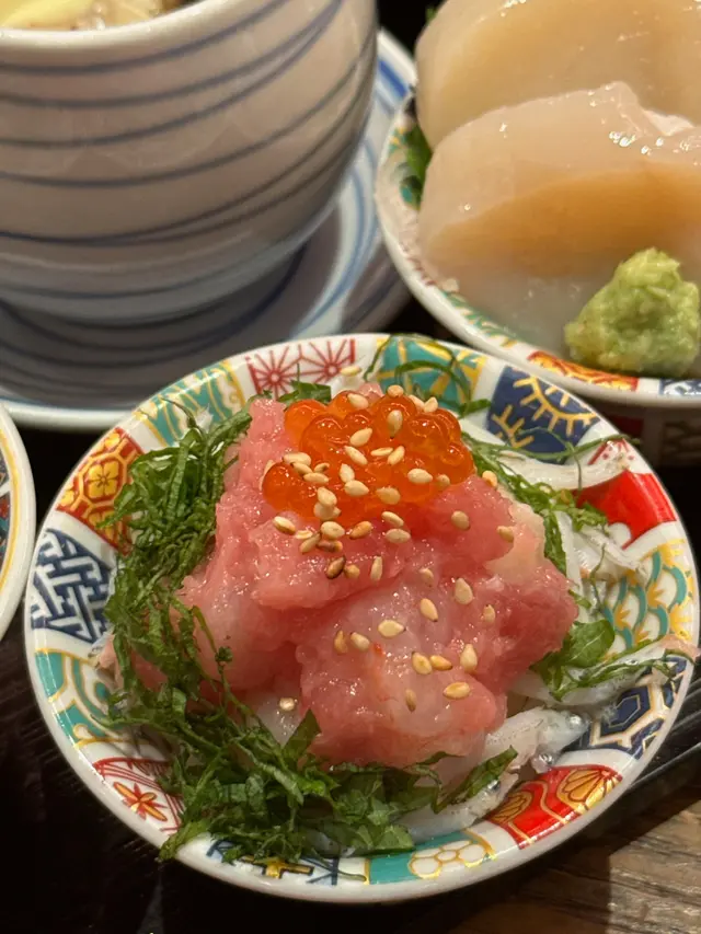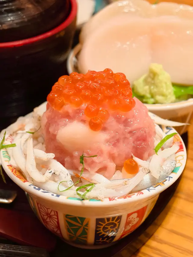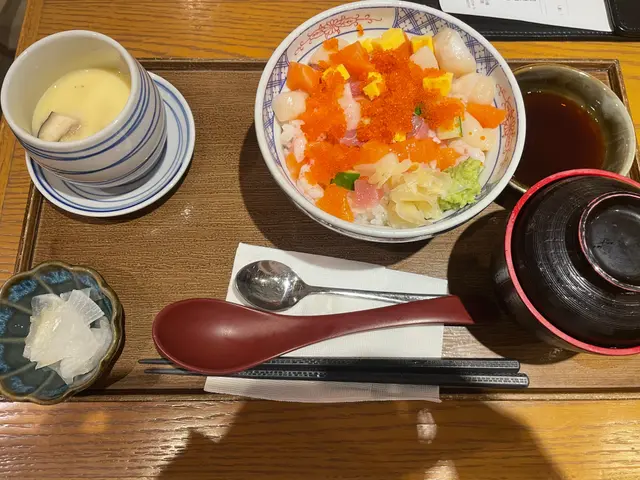 什錦刺身丼定食 ($78) ★★★★✰茶碗蒸的蛋很順滑,而且不會太鹹,而且材料不少,絕對優於同集團旗下某迴轉(後成為火車)壽司店的茶碗蒸。之餘麪豉湯則與超市買到的麪豉湯包無異。角切魚生丼一般是價錢比較合宜的魚生飯,最重要是魚生感覺新鮮,而且有多款不同魚生,這兩點這碗刺身丼都做到。略嫌飯的比例多了一點,最好多些魚生