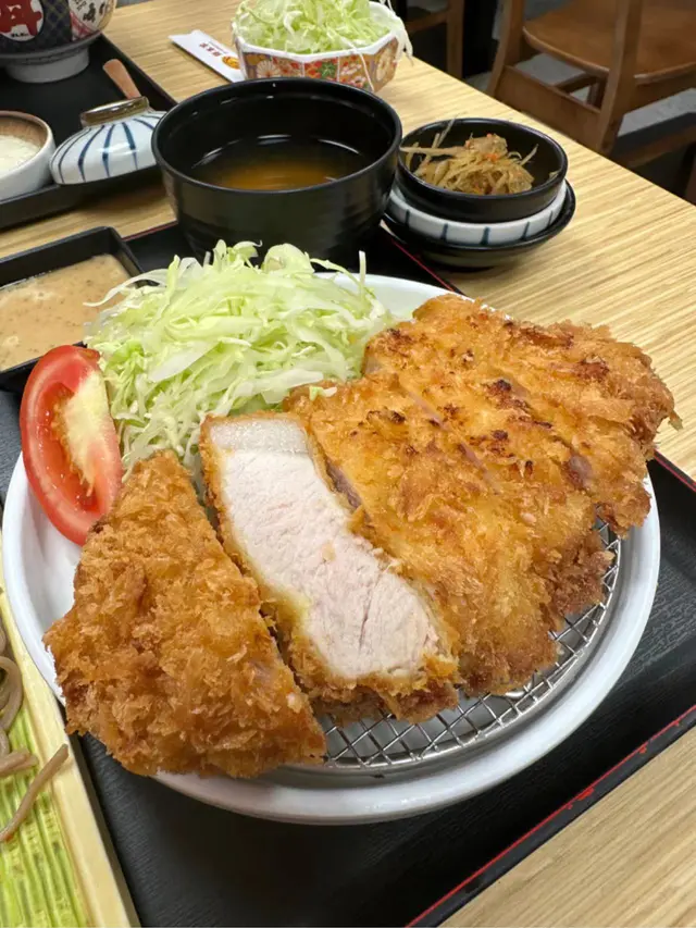 吉列厚切豬扒定食($98)真係好厚切,足足有平時坊間嗰啲嘅一倍厚。吉列炸衣薄薄一層,脆口,無油膩口感;豬扒肉質未算軟嫩,但唔會好嚡,邊位有少少肥膏,爽口彈牙唔油膩;吉列醬汁酸酸甜甜,可作中和作用。要咗加飯及加菜,所以白飯及椰菜各多一碗。前菜牛蒡絲味道幾濃。白飯好有誠意,有紫菜同芝麻。麵豉湯味道正常,但頗多昆布片。茶碗蒸夠滑有蛋味。南蠻炸雞定食($76)並不是炸雞件,係雞扒,又係勁厚勁大塊。雞扒肉質軟嫩,而且仲有少少肉汁。南蠻醬酸味偏少。呢個定食CP值高。吉列竹筴魚(+$18)加多咗一份小食,竹筴魚比預期中厚,但有少少魚腥味,要加啲檸檬汁癖一癖,試過就算了。總括嚟講,呢間餐廳會再次幫襯,食物質素可以,收費合理,服務員有禮態度好(依家好多餐廳都無),環境尚算寬敞(坐位唔會太逼)。PS:自己 scan QR code 落單。午市無加一服務費。…查看更多