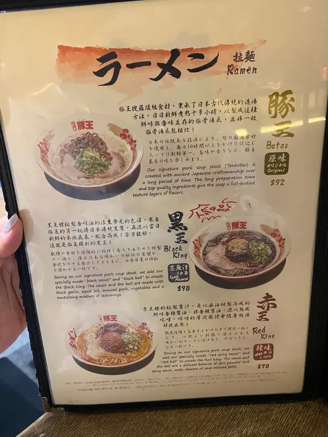 好耐以前沙田食過,正正常常經過銅鑼灣,另外兩間拉麵都食過,諗住試下咁耐無食,睇睇有咩唔同,種類都係以前果幾款。食完第一啖,真係要講一講,好耐無食過咁難食嘅拉麵,真心衰過自己煮,叫左黑王,諗住都唔借太伏個湯勁鹹又唔熱,木耳椰菜全部好似岩岩雪櫃拎出黎咁款,拉麵不值一提,彈牙又唔係,煮完一堆野咁,叉燒又薄又硬,又無叉燒味其實無心點解要開咁大間?其實食完一啖真係有少少想投訴,但真係好肚餓,唯有當劣食,可一不可再