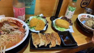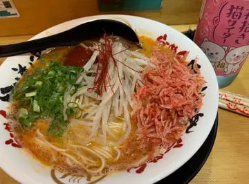 豚道乐 (荃湾)铺面唔算大,但装修几有日本feel,吧枱位置仲设至差电位,十分细心~🥰另外,职员服务态度良好,值得一赞💕.🦐海老汤拉面🍜 $85(星期五、六、日限定)汤底浓厚香纯,加上大量樱花虾,双重滋味🦐 猪肩肉有口感而唔会韧(两大片),仲有比火炙过添🔥🥳食到落尾会有少少腻🤏🏻但有大量芽菜平衡返~.➕招财猫汽水 ($20)- 波子汽水味.👍🏻👍🏻👍🏻👍🏻/5..🧄黑蒜油拉面🍜 $80一上菜就闻到好香嘅蒜味,食嘅时候汤底挂面能力非常好,因为拣咗较幼身嘅直面(另有曲面可选),加上汤底非常浓稠👅一样都系有两片炙过嘅猪肩肉,蒜味同肉好夹,加强咗肉嘅鲜味🤤.➕信州白提子梳打 ($25).👍🏻👍🏻👍🏻👍🏻👍🏻/5...< 小食 >.🔸男爵南瓜薯饼 (一件) $18食完拉面再食小食,薯饼放咗咁耐依然保持到外脆内软嘅有感。南瓜蓉甜甜地,整体嚟讲好松化💜👍🏻👍🏻👍🏻👍🏻👍🏻/5.🔸男爵咖喱薯饼 (一件) $18外皮唔算厚,非常松软嘅薯蓉,淡淡嘅咖喱味。但味道比较单一,如果可以加芝士喺面前就最好喇~~P.s 咖喱味可以可浓多少少👍🏻👍🏻👍🏻/5.🔸日式饺子🥟 (5个) $38比较普通,外皮唔会好厚,CP值低😬👍🏻👍🏻/5...🔺有加一服务费🔺下午茶时段有学生优惠八折