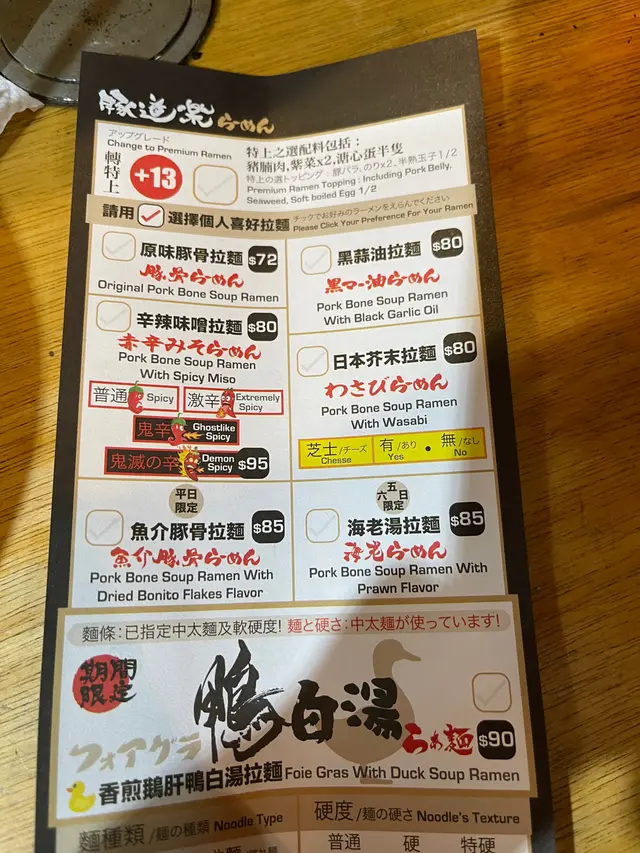 荃灣拉麵雲集的體驗❤️其實我自己都比較少嚟到荃灣,今次約咗住喺附近嘅朋友先黎一黎,今次就試吓呢間日式拉麵店——豚道樂💕❣️香煎鵝肝鴨白肝拉麵 $90 (7.5/10)因為呢個係期間限定,所以我冇得揀湯底同麵條粗幼。一上到黎係覺得,都唔算好多份量,因為我朋友係叫咗最基本嘅豚骨拉麵,佢比我嘅感覺好似好過我呢碗🤪不過我呢碗都算係湯底好濃,鵝肝都算好入味,拉麵都分明有條,咬感還好,但係呢個價錢就有少少貴。同埋個人覺得都唔算坐得好乾淨同舒服。下次可能會試下隔離颱風。…查看更多