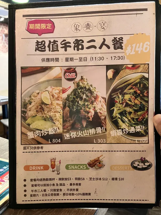 今日去咗屯門整車,反正都要等成個鐘頭多,週圍行睇下搵唔搵食hea下時間,行到附近見到呢間食泰菜,門口個餐牌幾吸引,價錢仲好經濟,見到入面有位,就試試啦!下午茶由28蚊至44蚊不等,仲包飲品,又可以追加小食泰式雞柳炒金邊粉$42上枱見份量好多,大大碟真係唔似下午茶份量,配料有豆卜,芽菜,蔥,蛋和雞柳,不過河粉炒得唔夠乾身,雞柳亦唔多,味道一般(本身想追加個月亮蝦餅,不過賣曬)餐飲熱咖啡冇乜特別總結位於屯門嘅平民泰菜,價錢合理,服務好,上菜快,雖然算得上係天花板級數,呢個價錢嚟講,都冇乜嘢好投訴…查看更多