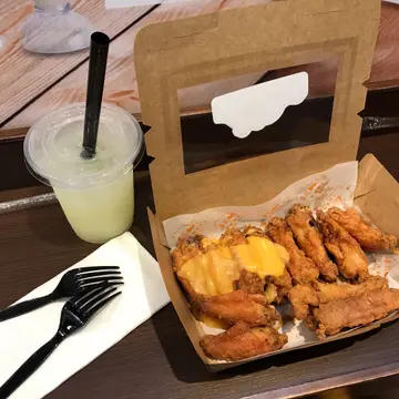 叫左一份三色拼盘(单点$48)同柠水BB(跟餐$10),三色拼盘分别有车打芝士、蒜香豉油同原味,每样各四件,即系六只鸡翼,其实除返开,每只都要成8蚊,都唔平!三款鸡翼炸得香脆,但都系同一腌料,即系原味拎去炸好后再沾上唔同调味,所以食落其实无咩特别,只可以话不过不失。至于柠水BB,已将柠檬起肉榨汁,酸酸甜甜都几开胃既。…查看更多