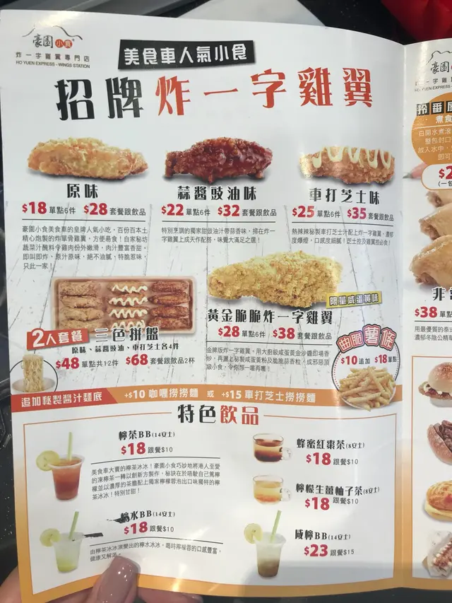 叫左一份三色拼盤(單點$48)同檸水BB(跟餐$10),三色拼盤分別有車打芝士、蒜香豉油同原味,每樣各四件,即係六隻雞翼,其實除返開,每隻都要成8蚊,都唔平!三款雞翼炸得香脆,但都係同一醃料,即係原味拎去炸好後再沾上唔同調味,所以食落其實無咩特別,只可以話不過不失。至於檸水BB,已將檸檬起肉榨汁,酸酸甜甜都幾開胃既。…查看更多
