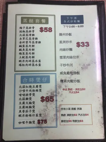 深水埗的大街小巷不乏美食。这次光顾的茶餐厅位于深水埗,由地铁站走5-10分钟,便能看见茶餐厅伫立在街道转角位。餐厅的装潢就是很地道的港式风味。餐牌款式也是简单的,餐点种类繁多,跟一般茶餐厅一样,五花八门,让人在选择上难以取舍。餐牌上出现一些陈年旧迹,有著时代感,像是告诉客人它在香港经历过不少时光。我跟好友简单的每人一份快餐,送餐速度也蛮快的。粟米斑腩饭配冻柠茶我是挺喜欢这种粟米捞饭的⋯⋯茶餐厅的话我多的是会点这道快餐,但这种简单的快餐也不是处处都做得好。这间茶餐厅做得倒是挺好,粟米酱做得浓味,粟米粒也挺多,很适合捞饭吃。而斑腩有先炸一炸,外皮还是带脆的,斑腩肉肉质滑嫩。我大概下次也会叫这道快餐——做法虽然简单但又好吃。而且,现今处处吃晚饭都要五六十元的世道,这茶餐厅还是四十多元就可以了,放眼望去,蛮便宜了。北菇蒸滑鸡友人点的是北菇蒸滑鸡,与饭分开上,又是一道简单的晚餐了。滑鸡肉质鲜嫩,外皮嫩滑,鸡件的骨也少,蛮不错。作为香港的茶餐厅,这里充满了情怀。客人们感觉都挺放松,这一桌的叔叔看著新闻便跟那一桌的伯伯聊天,这一家人在吃饭,小孩就被另一桌的叔叔逗笑了。茶餐厅的这种氛围是在其他地方找不到的轻松。食物便宜又不错,香港地道茶餐厅独有氛围,推荐来光顾喔。Read More