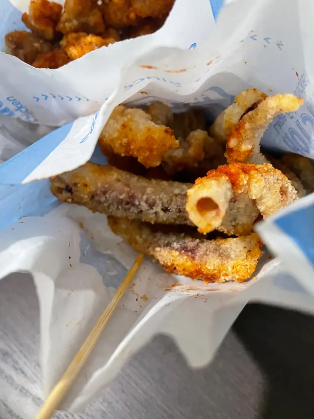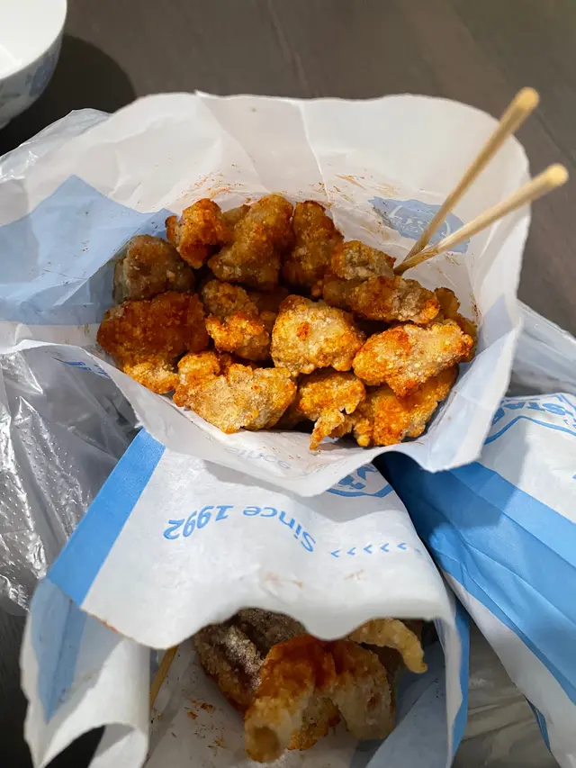 台式轟炸三重奏邪惡度爆表卻停不了口豪大大鎖定人氣攤位試齊炸雞排、鹽酥雞同炸蚵仔!所有嘢現炸,雞排厚實過癮——外皮酥脆帶點薄粉,咬下「咔哧」聲超治癒,肉汁瞬間迸發,醃料鹹香透骨;鹽酥雞更是驚豔,椒鹽撒得勻透,雞肉嫩滑不乾柴,一口一顆徹底上癮!炸蚵仔則顯功夫,裹粉極薄,蚵仔肥美爆漿無腥味,蘸少少胡椒鹽更提鮮。整體炸功了得,油溫控制精準,毫無油膩感。唯獨蚵仔稍有小顆,若再飽滿些更完美。這攤三重奏邪惡度破表,卻讓人甘願淪陷!去隔離配杯冰涼珍珠奶茶,就是夜市終極享受~😍😋…查看更多