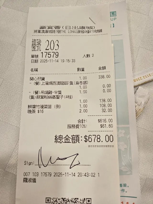 豪宴薈 (将军澳) 网址: https://s.openrice.com/QrLS0msWF00 地址: 香港將軍澳康城路1號The LOHAS 4樓418號舖 电话: +852 26388929