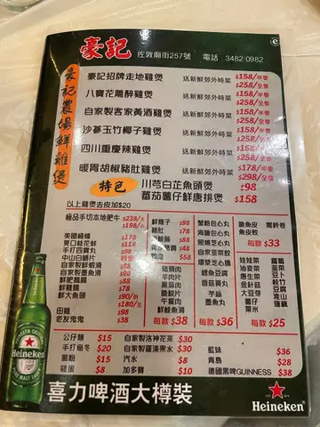 豪記 (佐敦) 网址: https://s.openrice.com/QrLS0XDu200 地址: 香港佐敦廟街257號地舖 电话: +852 34820982