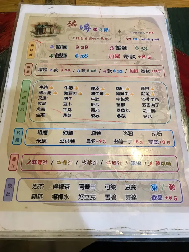 豬嘜車仔麵 (牛头角) 网址: https://s.openrice.com/QrLS0TT4900 地址: 香港牛頭角定富街4-24號七喜大廈地下10號舖 电话: +852 26284178