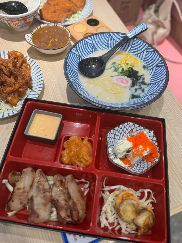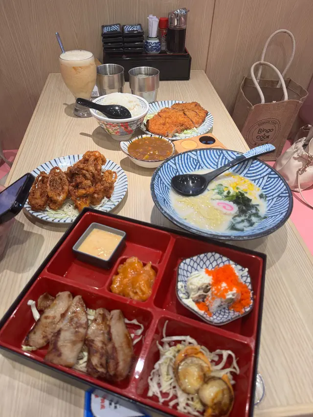 位於大圍的【豬屋日本料理】是一間充滿少女心的日式餐廳,一踏入店內,粉紅色的座椅與牆壁佈置立即吸引目光,夢幻感滿滿!餐牌選擇極多,除了主打的便當系列,還有冷盤、特色卷物、刺身、壽司、炙燒壽司、田園及海鮮系列、刺身丼、豐盛一人餐、二人套餐、一品料理、酒類及佐酒小食等,款式豐富,令人眼花撩亂。伊賀便當:蒜香牛油比目魚扒:外脆內嫩,牛油香氣撲鼻七味燒豬頸肉:微辣惹味,肉質彈牙和風燒汁飯:鹹香入味,飯粒分明味付螺肉:爽口彈牙粒粒蟹籽加州卷:口感豐富,層次分明奈良便當:唐揚炸嫩雞:外脆內嫩,油而不膩滋味脆炸魚手指:香脆可口日式圓蔥魚餅:甜香有嚼勁咖哩飯:香濃微辣,配料豐富味付螺肉:同樣出色甜品:福崗濃厚抹茶年糕:抹茶味濃郁,煙韌可口福崗直送綿綿芝士年糕:入口即化,芝香四溢飲品:青柑桔可樂:清新解膩熱柚子蜜:溫暖香甜,飯後一流總結,餐廳不但環境吸睛,食物質素亦有驚喜,是大圍區不可錯過的日式小店。…查看更多
