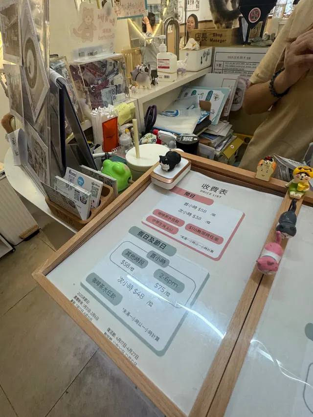 😘😘猫之茶房位於荃灣眾安街樓上鋪,純白簡約風格,而且入邊好多貓貓休息中。氛圍非常溫暖同埋休閒。摸摸猫🐱場內有貓貓頭箍及手套仔,岩晒打卡用。同時有擼猫捧借用,用來同猫猫玩。佢地每隻都悠然自得咁舔舔手腳、鬆鬆頭,好萌。自助飲品區:有自助熱咖啡機☕️,任君選擇。雪櫃有售提前沖調好的摩卡及罐裝飲品,甜品有芝士蛋糕🍰。熱/凍咖啡都好飲,唔會過甜。芝士蛋糕味道👅香到連猫猫都出手想搶來食。🫨🫨店鋪亦有售賣猫猫衣服及cafe猫既周邊產品;同場亦有多款桌遊及書籍📚免費借用,最岩放假過來chill下!🥰🥰…查看更多