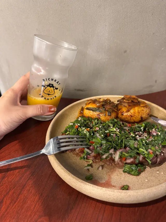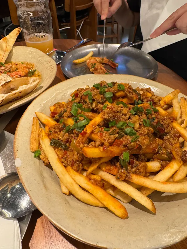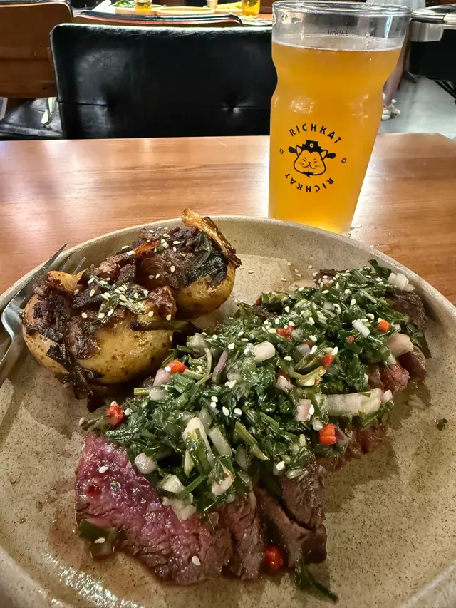 新商場Go Park主打人寵共融來過這邊幾次,喜歡這邊relax的風食店多數有室內和戶外座可和寵物一起進餐,享受陽光和自然風室內有投影設備,播映各類球賽更有一張桌球枱供客人玩樂雖然我是下午來到,但氣氛一樣好!貓員外有自己的手工啤酒不貴,凡點主菜一份可以$25換購桂花小麥,帶淡淡的桂花甜味「秀才」golden ale清爽容易入口Happy hour更是買一送一呢!(僅僅好錯過了~)酒吧系餐廳食物一點也不馬虎多帶一點印度或是四川菜的twist印度咖喱配薯條,佐酒恩物沒想到這麼大的一盤!點這個再加上啤酒,足夠快樂一下午!雲貴麻辣川臘腸薄餅這個是真的好吃!喜歡麻辣刺激過癮臘腸鹹香且煙韌,更勝意大利香腸(我覺得啦)薄身餅底是我喜歡的!薄餅款式超多每款口味也很吸引有機會一定會再試其他口味(但也很想在吃雲貴麻辣)烤牛腹排配中式韭茜青醬牛腹排就不多說了,烤得外邊帶焦香內裡肉汁滿滿韭茜青醬真是畫龍點睛之作一直覺得芫茜比蕃茜更帶草香味喜歡的必須一試還附兩顆焗薯,內裡有些以麻辣油炒香的蒜片非常具fusion風味的菜式,而又恰到好處價錢不貴,happy hour有更多優惠再訪Go Park的話,此餐廳會是我不二之選!…查看更多