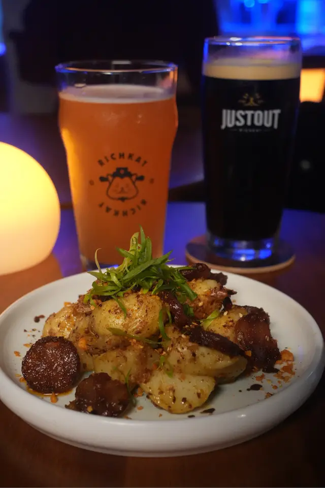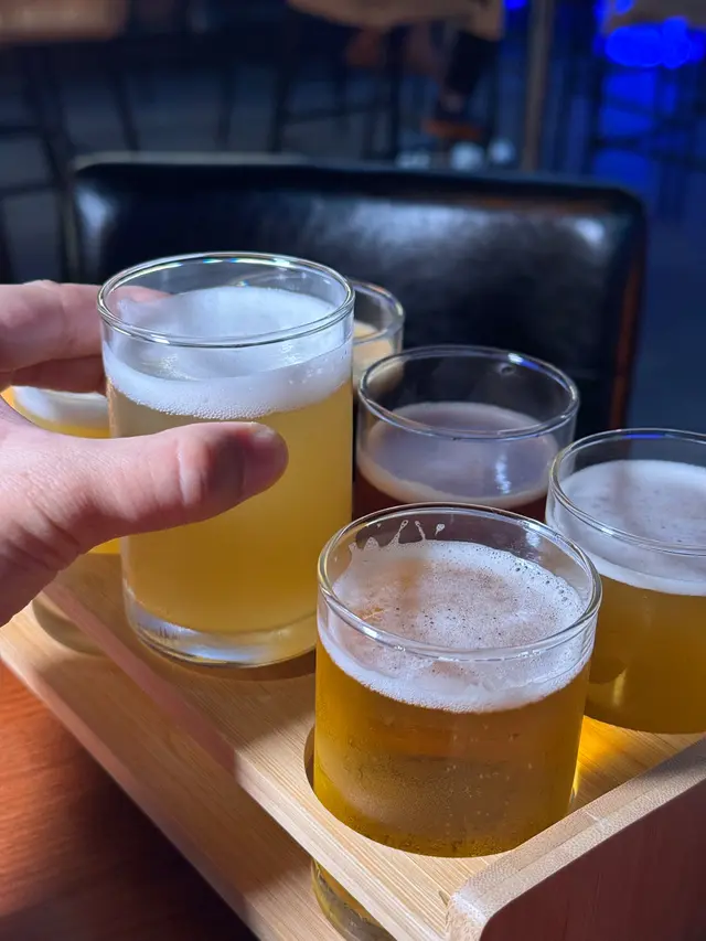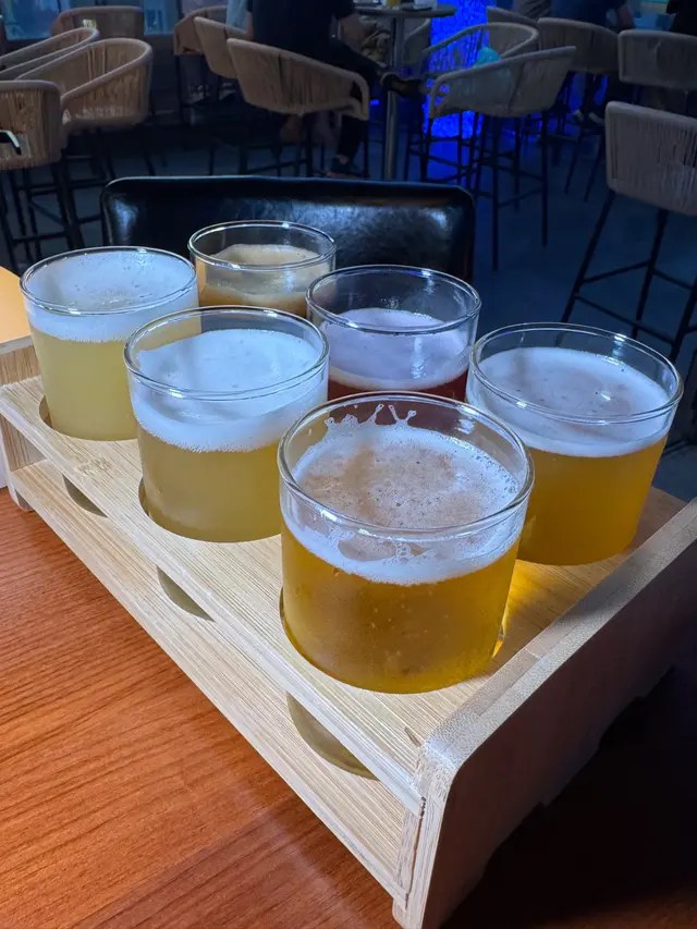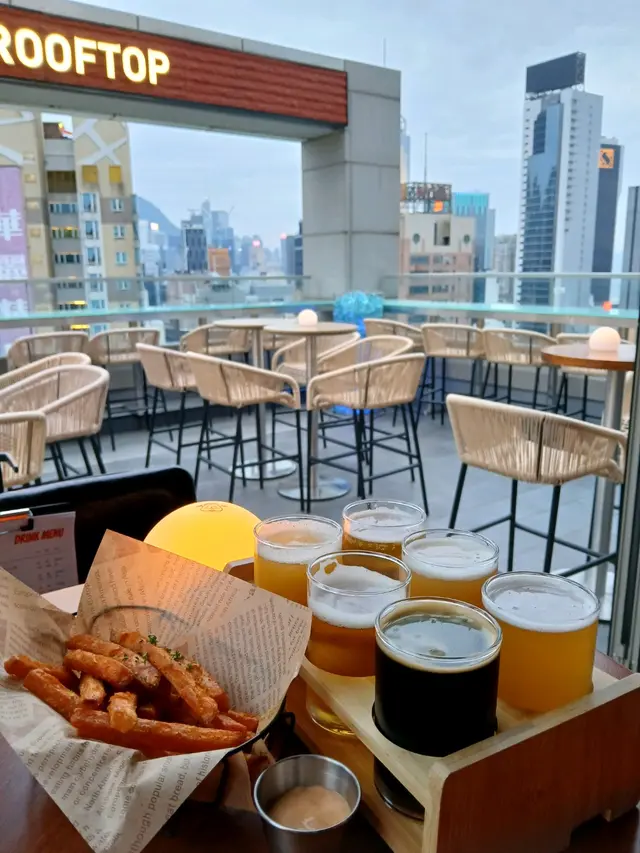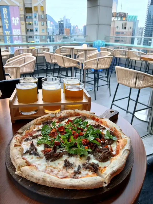 今日放工後, 來到銅鑼灣一間位於三十樓天台的酒吧西餐廳, 無論環境、氣氛、食物質素、服務等等, 都令人覺得非常滿意, 真心想推薦一下 。一來到餐廳門口, 就見到張貼了很多得到了Beer Awards 的獎項, 所以這裏的手工啤酒, 是不得不試的。Tasting Set (120ml x6)這個品酒套餐, 可以自選六款不同的手工啤酒, 非常抵玩, 可以一次過同朋友一齊share, 試六款不同的口味。土豪: 味道較為清新, 容易入口, 不會帶苦澀味道, 適合不愛太濃味的女仕花魁: 味道不會太強, 同樣容易入口, 帶有小麥的味道桃寶: 帶有清新桃香果味, 入口微甜, 非常容易入口葡萄熟了:葡萄汁混合啤酒,入口有酸甜的味道, 感覺清爽, 同樣容易入口小二:入口帶有中度的微甘酒味, 口感清爽侍郎: 是深黑色的啤酒, 入口帶有非常濃厚的咖啡香味, 質地比較順滑醇厚, 酒味較強, 適合愛濃味人仕洋蔥圈 :洋蔥圈炸得非常香脆金黃, 與手工啤酒非常合襯北京烤鴨Pizza:Pizza餅底烤得又香又鬆軟, 北京填鴨的肉好多, 配上青瓜同北京烤鴨的醬汁, 酸酸甜甜, 更加美味卡邦尼亞意粉:想不到這裏的意粉也做得非常出色, 醬汁非常creamy, 入口有濃香的芝士醬味道, 與煙肉一同配襯, 簡單又好食另外, 餐廳位於銅鑼灣30樓高層的天台位置, 不過今晚下大雨, 未能欣賞風景, 下次有機會一定要和朋友再來。…查看更多