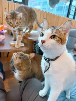 一入门口就听到「🐱 喵~」一声,瞬间觉得自己心都融晒☺️ 呢间猫Cafe主打边吸猫边食饭😆 同时又有爱心元素——每月会捐出部分收益俾慈善机构帮助猫猫领养,啱晒一班爱猫又想行善嘅人👍整体环境走温柔系,有啡色木系家具同柔和灯光✅ 最得意系佢啲矮桌设计,猫猫可以轻松跳上嚟膝头,真系会令人心都溶化🥰 打卡位系一个帐幕小天地,有藤篮同绿植衬托,啱晒影相放上社交平台🤩 食物方面,我试咗佢哋嘅「喵全日早餐」——份量啱啱好,肠仔煎得香脆,炒蛋滑到好似云咁,喵形多士绝对无得输😎 搭配「伯爵红茶」,微微茶香中又带少少花味,温柔得嚟有层次❤️ 之后仲忍唔住追加「猫猫西多士配焦糖酱」,外脆内软、甜而不腻,焦糖味超香😋 最后用「猫啡芝士蛋糕」收尾,芝士creamy得嚟唔会heavy,配埋小猫慢慢行过嘅画面,疗愈度爆灯🌟 同场仲有得买猫零食俾猫猫,吸猫时间保证唔会空手而回😎 如果你想揾个地方放松一下、被猫包围住食个靓brunch,呢间猫啡真系一个唔错嘅选择。带定相机,准备俾猫猫偷镜啦~🐾☕💛…ดูเพิ่มเติม